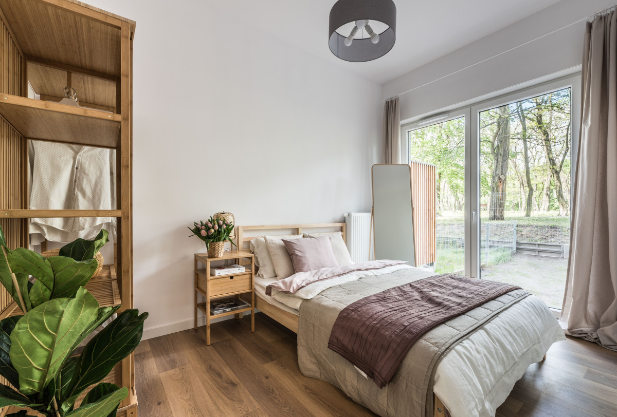 Jasne zasłony, okazałe rośliny, świeże kwiaty w wazonie i wystylizowane łóżko to elementy, które podnoszą wizualną wartość wnętrza. Zdjęcie: Tomasz Kazaniecki