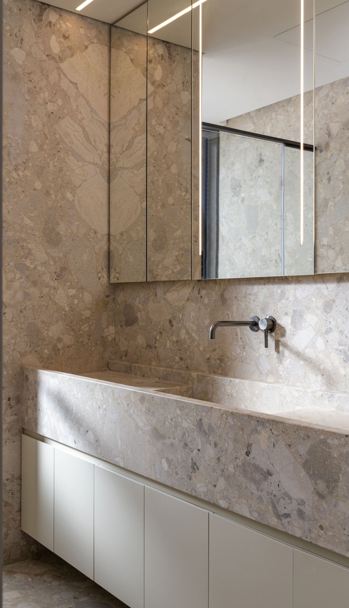 Mieszkanie znajduje się w Ashrafieh, w apartamentowcu zaprojektowanym przez architekta Kevina Dasha. Budynek, ukończony w 2017 roku, charakteryzuje się smukłą bryłą, dopracowanymi detalami oraz elewacjami utrzymanymi w stonowanej palecie szkła, marmuru i metalu.
