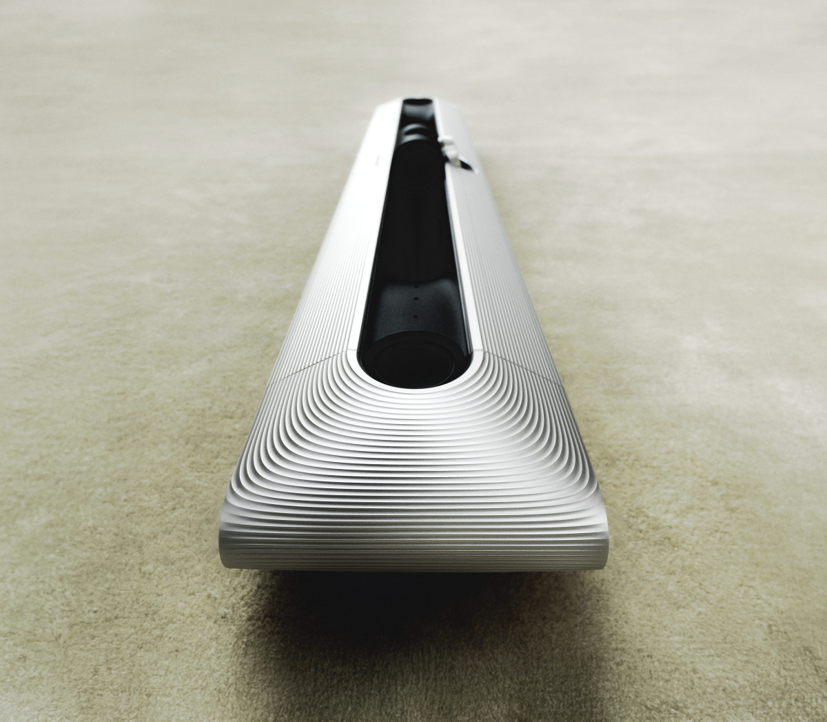 Jednym z najbardziej charakterystycznych elementów soundbaru Beosound Premiere jest głośnik wysokotonowy umieszczony centralnie i skierowany ku górze. Został zaprojektowany tak, by przyciągać wzrok niczym klejnot osadzony w toczonym aluminium.