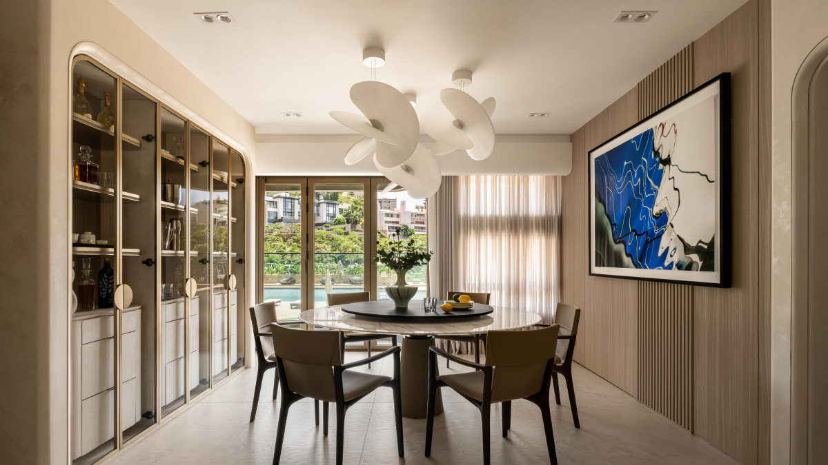 Mieszkanie o powierzchni 325 m2 znajduje się na dwóch ostatnich kondygnacjach luksusowego apartamentowca w Tsin Shui Wan w południowym Hongkongu. Dzielnica mieszkaniowa położona tuż przy plaży jest jedną z najdroższych na świecie.