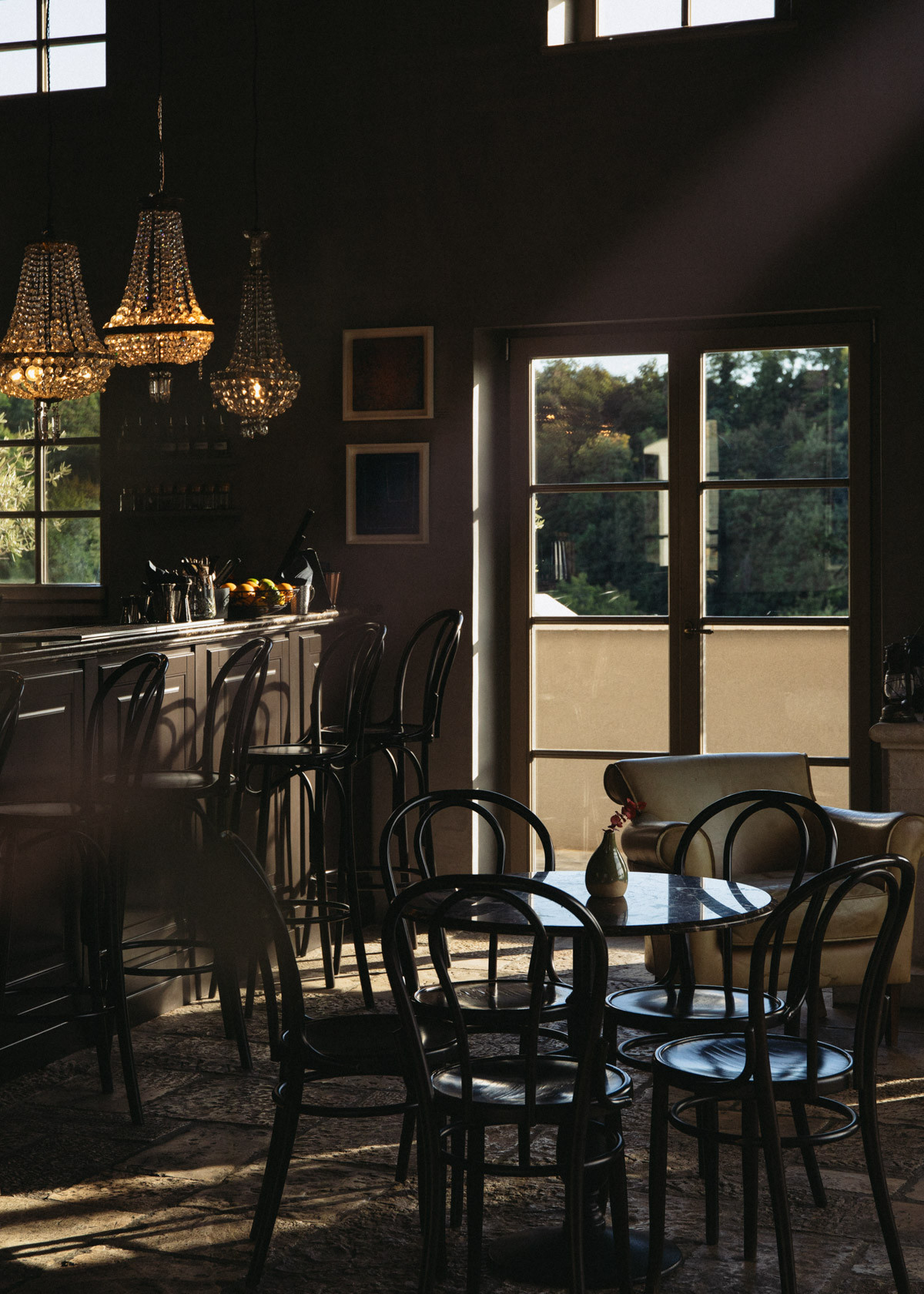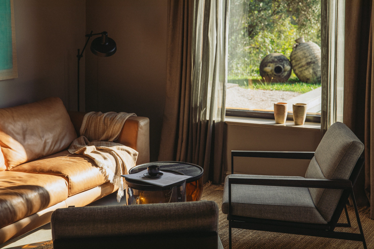 Wnętrza są oszczędne, ale pełne ciepła - nie konkurują z otaczającym hotel krajobrazem, lecz stanowią jego naturalne przedłużenie. Minimalizm spotyka się tu z lokalnym rzemiosłem, a każdy detal ma swoje uzasadnienie. Naturalne elementy, takie jak kamień i drewno, przeplatają się z wyrazistymi metalowymi akcentami. Całość spaja stonowana paleta barw powracająca w meblach, tkaninach i subtelnych dekoracjach, nadając wnętrzom wyważony charakter.