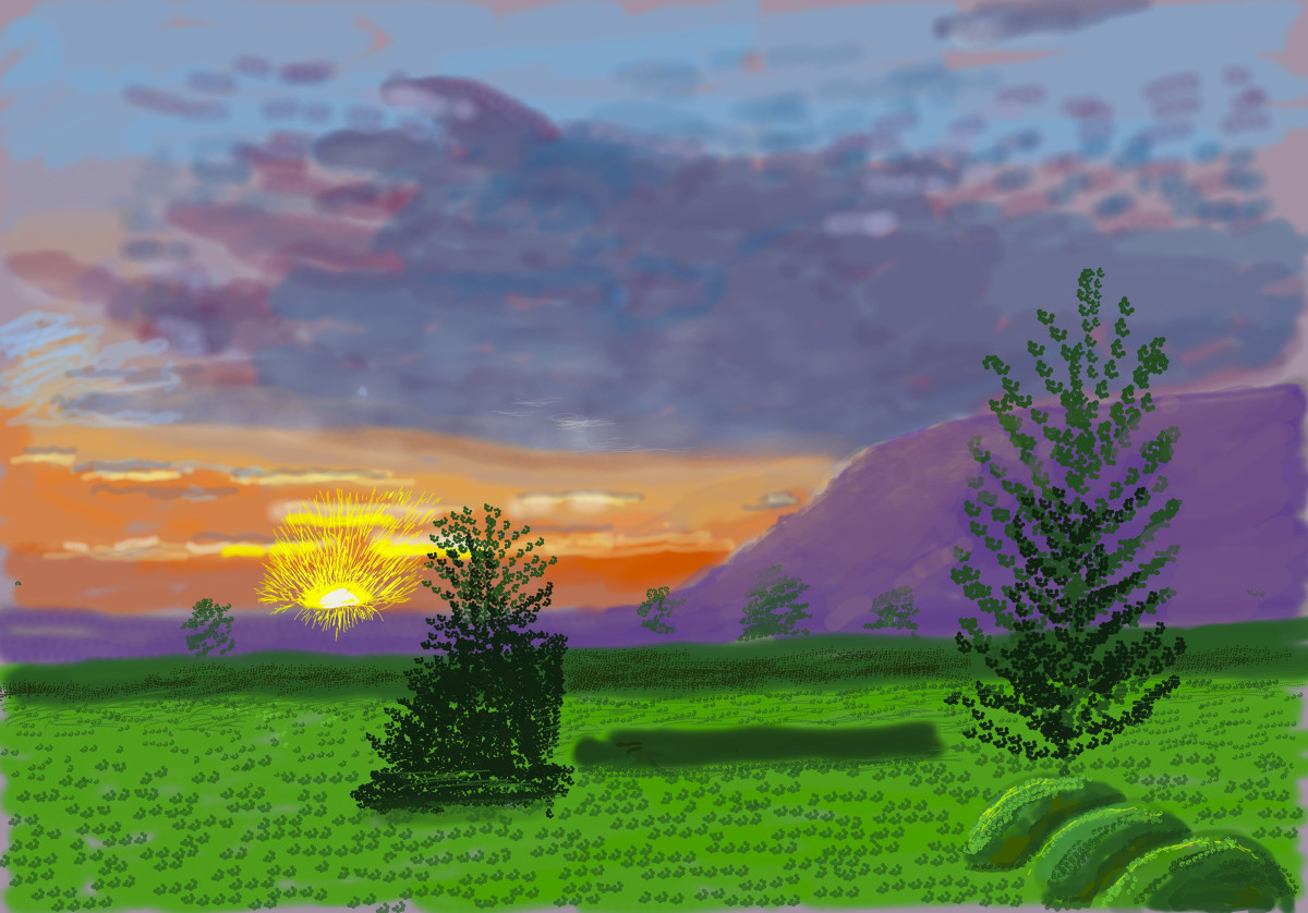 David Hockney "27th April 2020, No. 1", 2020, obraz namalowany na iPa, wydrukowany na papierze, montowany na pięciu tablica ch aluminiowych, 364,1 x 521,4 cm łącznie, kolekcja artysty, © David Hockney.