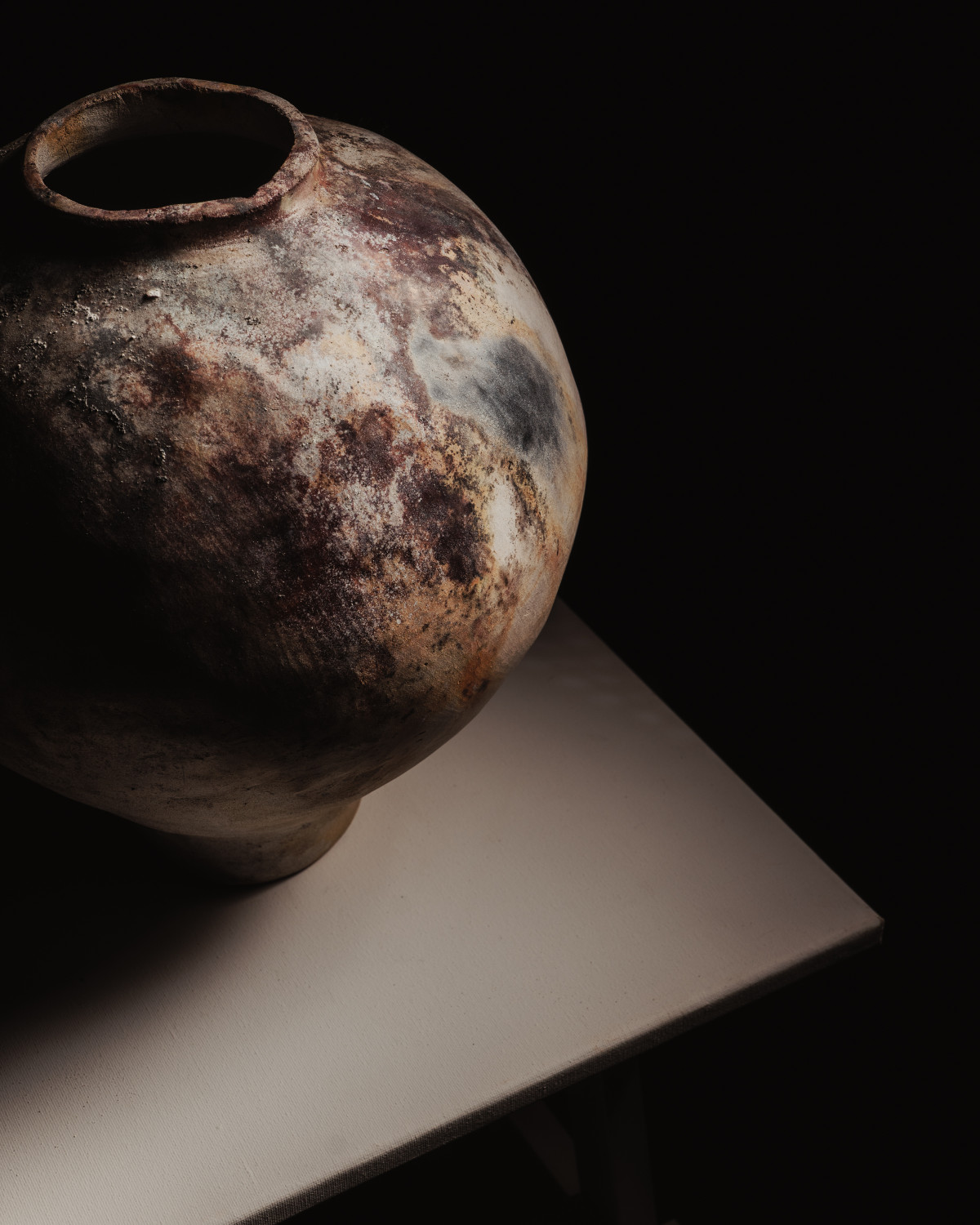 – Moja ceramika jest głęboko związana z kobiecością, surową mocą żywiołów i starożytnym rytuałem podtrzymywania ognia – mówi artystka. Naczynia z dolnośląskiej gliny wypala metodą jamową, jedną z najstarszych w historii ludzkości, wymagającą ogromu cierpliwości i pokory wobec sił natury. Przedmioty stworzone przez artystkę, przypominające kuliste, księżycowe kratery, emanują prostotą, surowością i niezwykłym wybarwieniem, będącym efektem przenikania się kolorów ziemi.