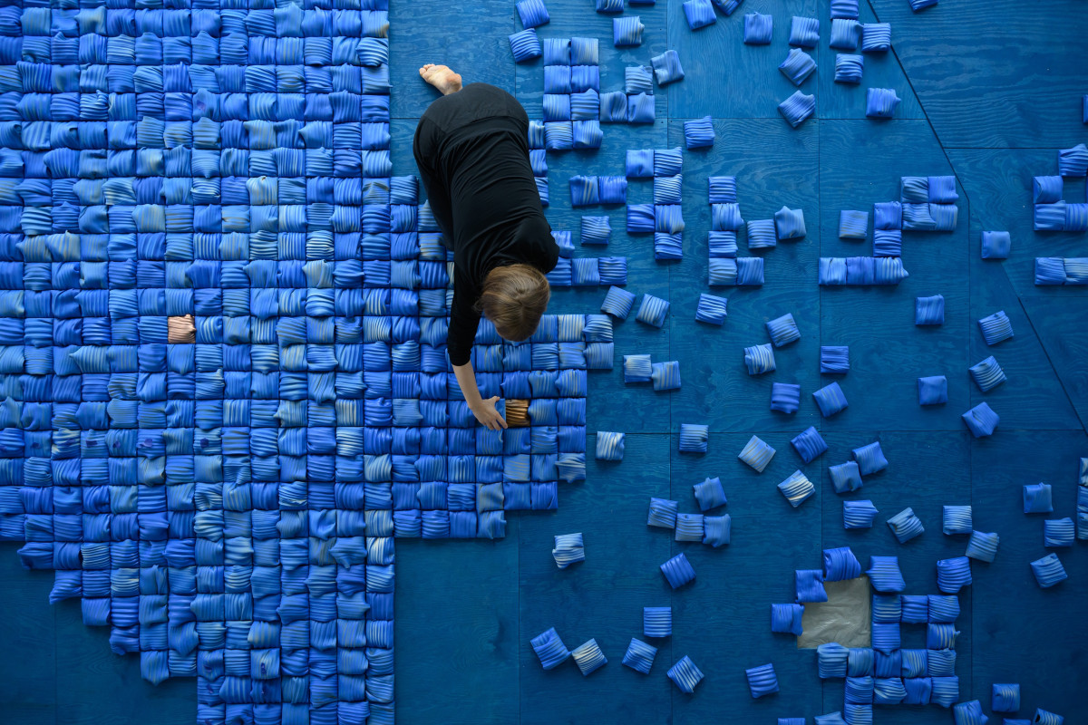 Alicja Patanowska podczas prac nad instalacją "The Ripple Effect". Zdjęcie: Kuba Celej