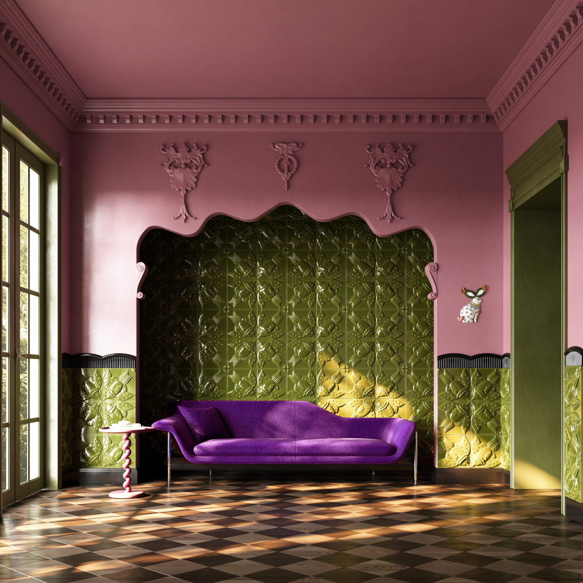 Wizualizacja wnętrza z kafelkami Królik, proj. Aleksandra Żeromska. Zdjęcie: Aleksandra Żeromska
