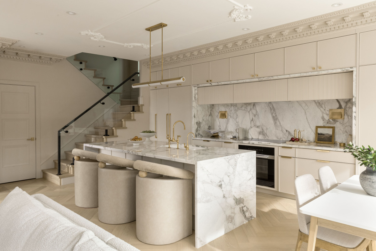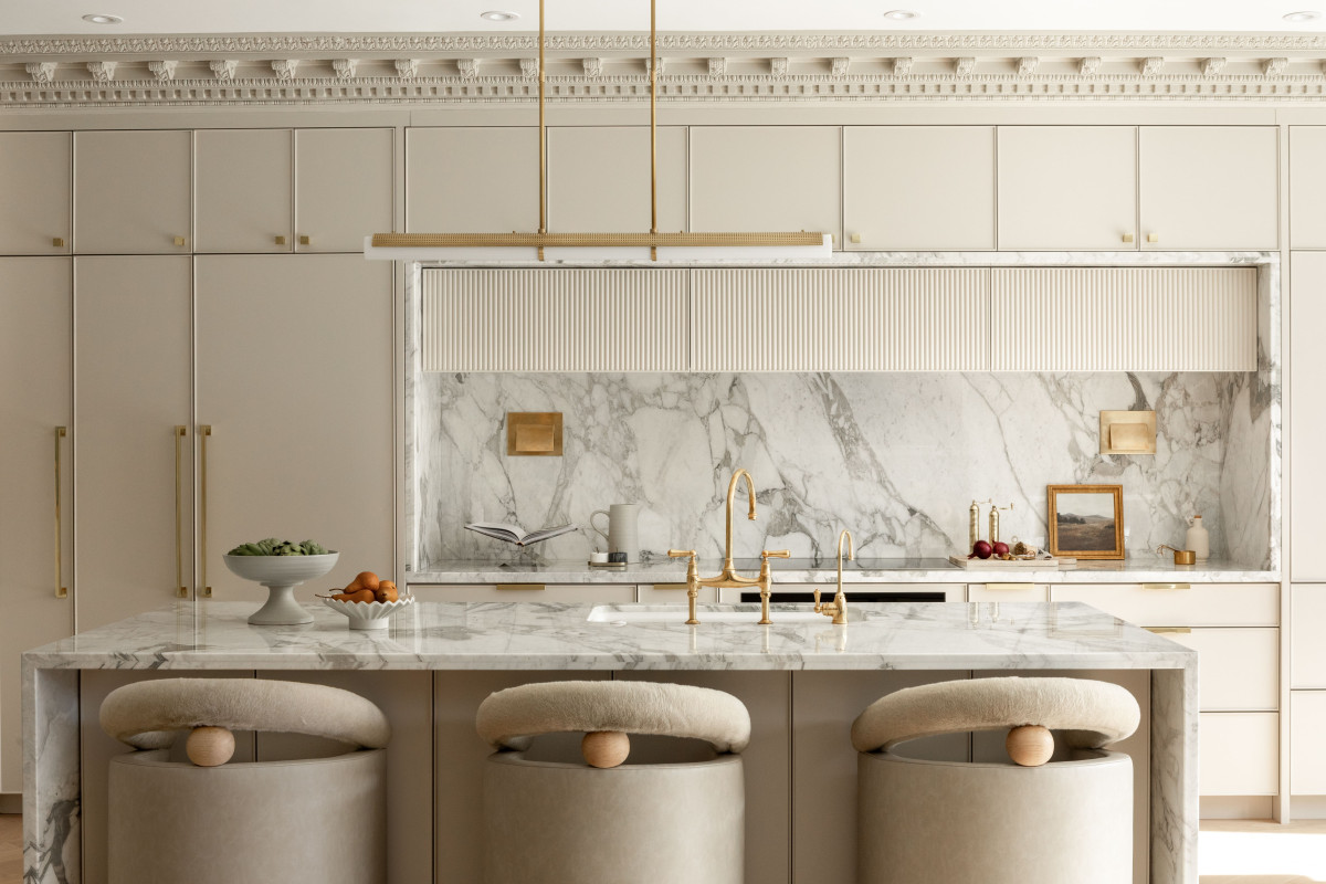 Ponieważ rodzeństwo DeCotiis wychowało się we włoskim domu i przez całe życie podróżowało do Włoch, w domu Marco nie mogło więc zabraknąć nawiązań do włoskiej i europejskiej architektury. - Zastosowaliśmy sztukaterię, włoski marmur, podłogi z białego dębu w jodełkę i baterie z mosiądzu. W ten sposób udało się nam uzyskać subtelną europejską estetykę, która jednocześnie jest nowoczesna i świeża – mówi projektantka.