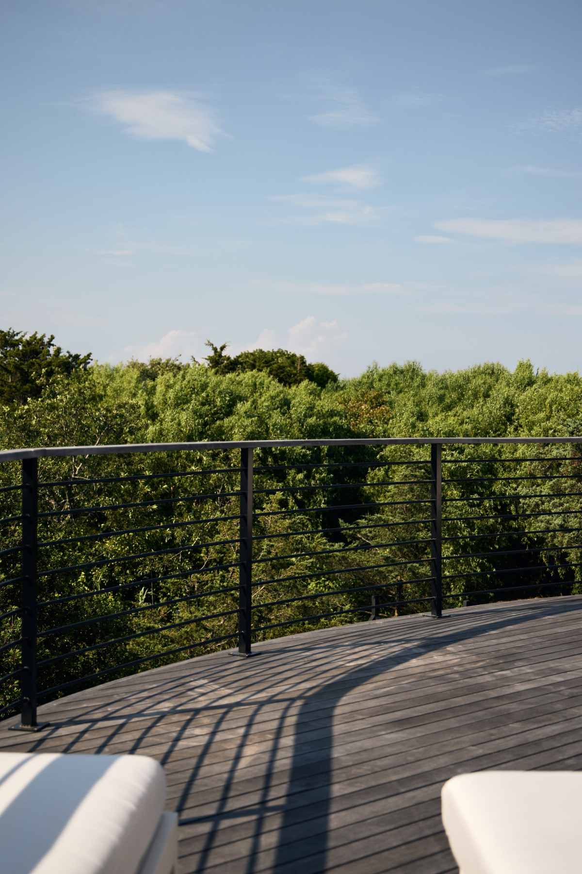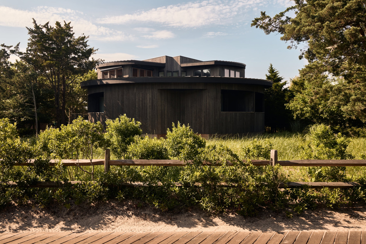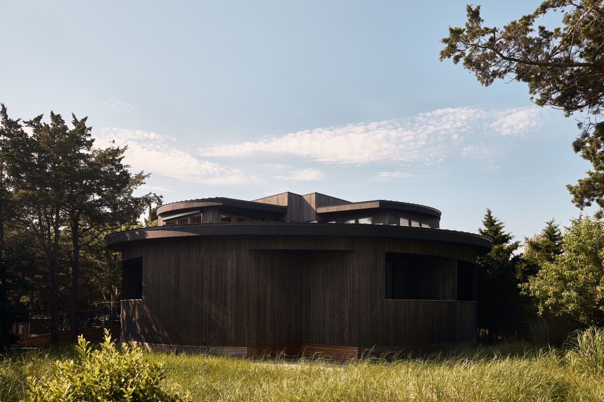 Letni dom należący do 4-osobowej rodziny mieszkającej na co dzień w Nowym Jorku jest hołdem złożonym architekturze lat 60. i 70. Budynek zaprojektowany przez architekta Nicka Petchecka charakteryzuje się czystymi liniami, otwartym układem, zaoblonym kształtem fasady oraz subtelnie zakrzywionym dachem o niskim spadku.