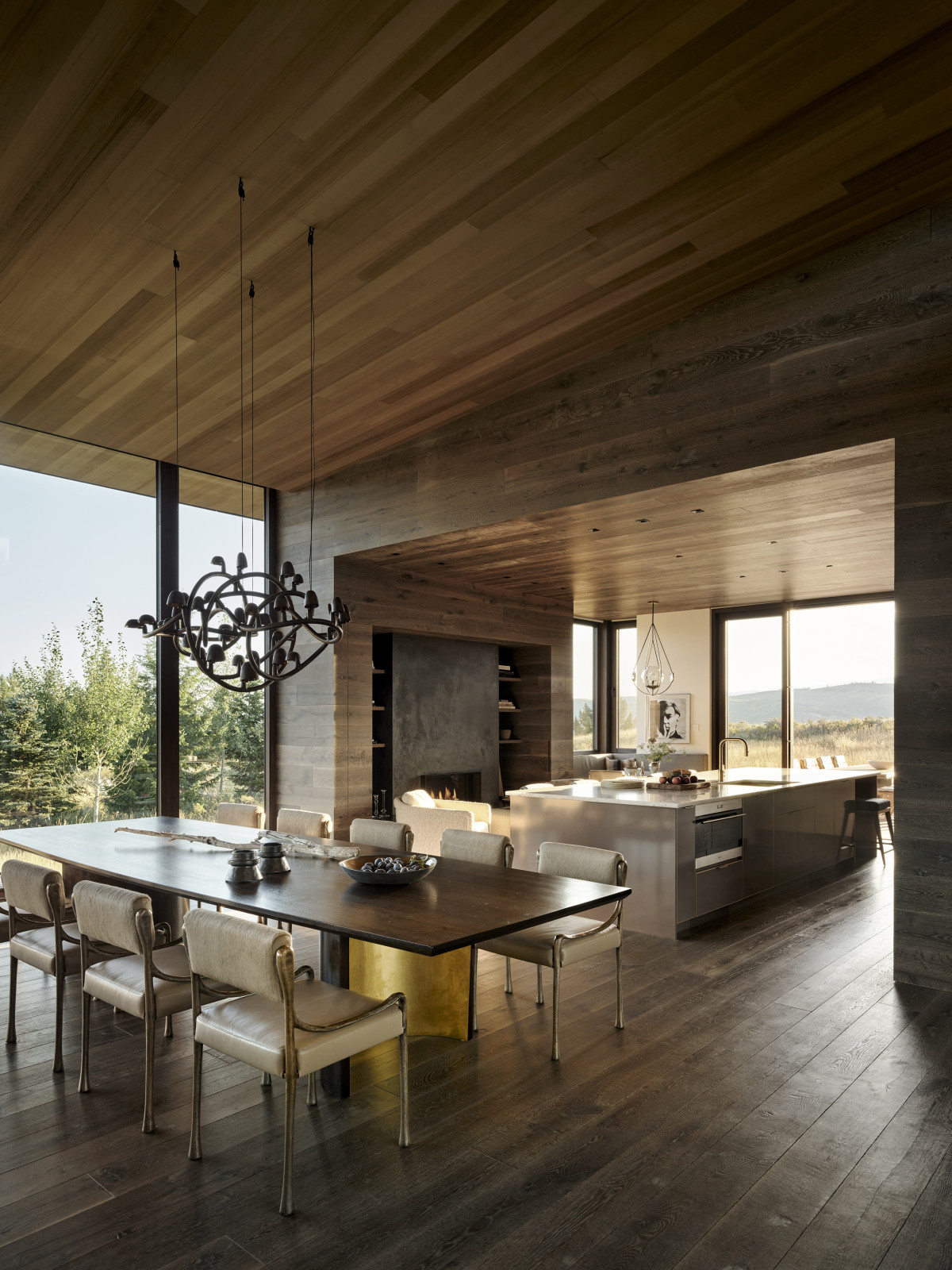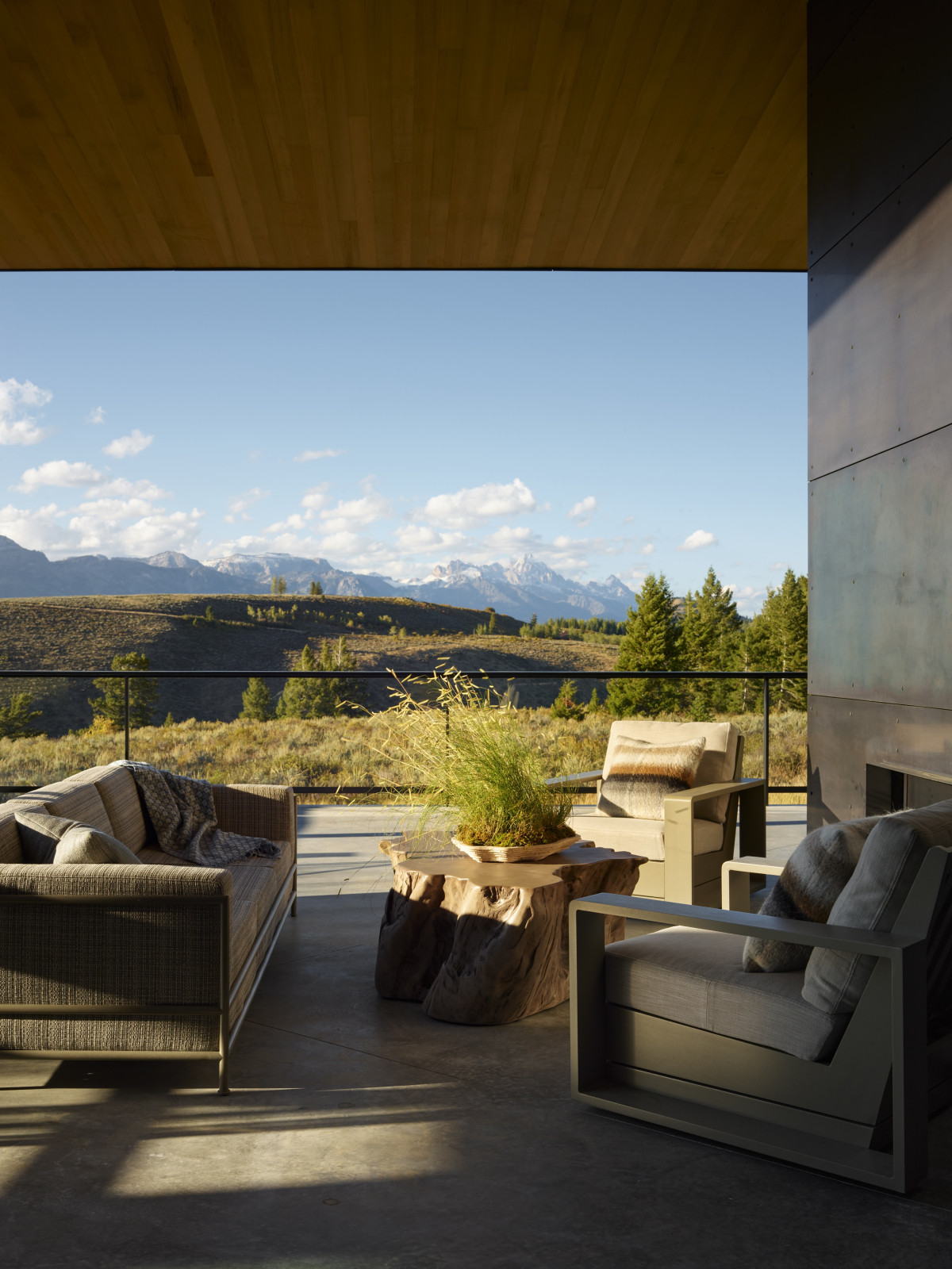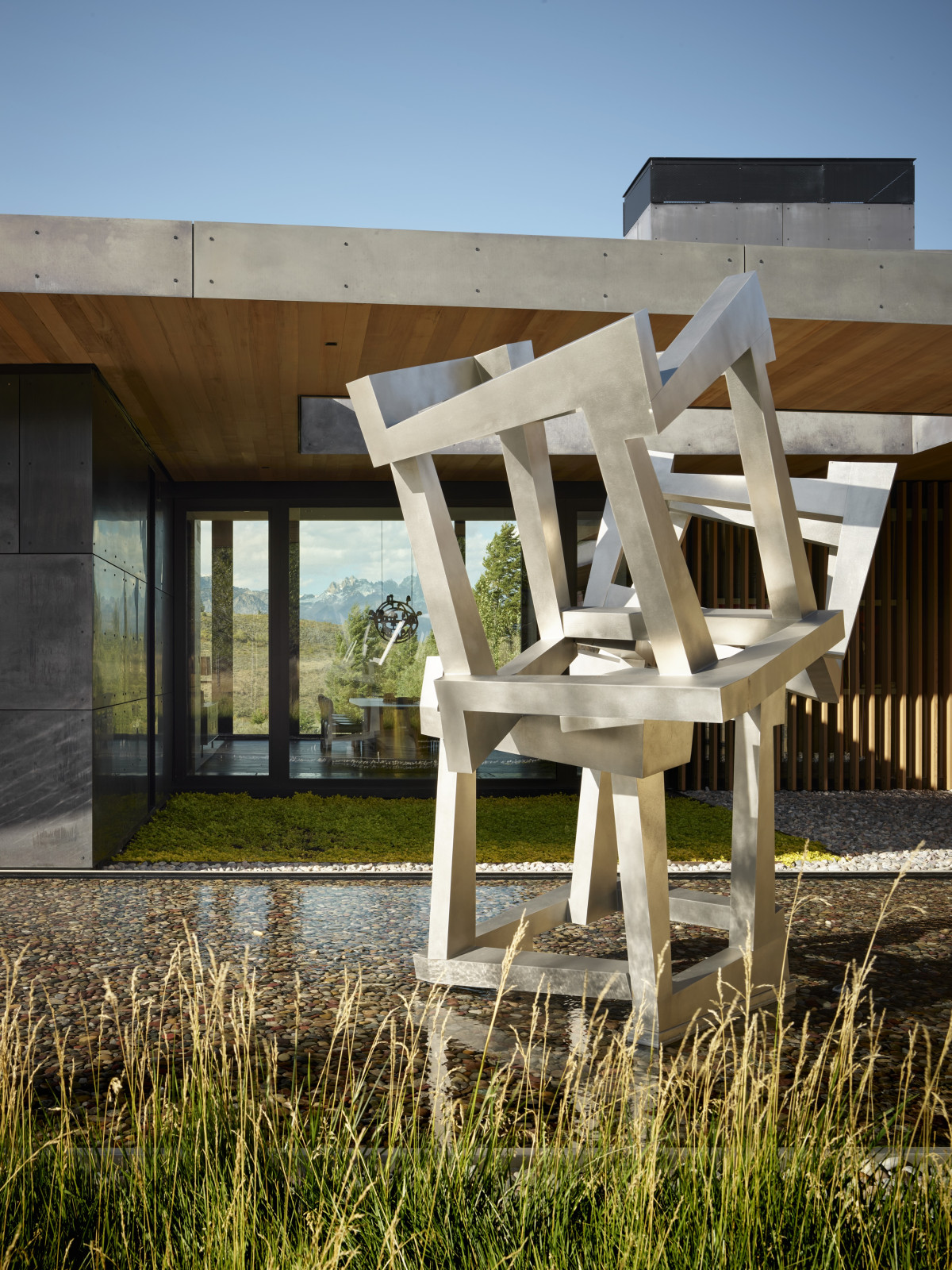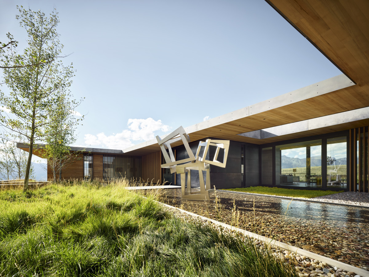 Nieruchomość o powierzchni 800 m2 znajduje się w miasteczku Jackson w stanie Wyoming. Do posiadłości prowadzi kręta droga, która stopniowo odsłania przed gośćmi wejście na posesję. Budynek został częściowo wkomponowany w zbocze wzgórza i mimo powierzchni oraz dwóch kondygnacji – zachowuje niski profil.