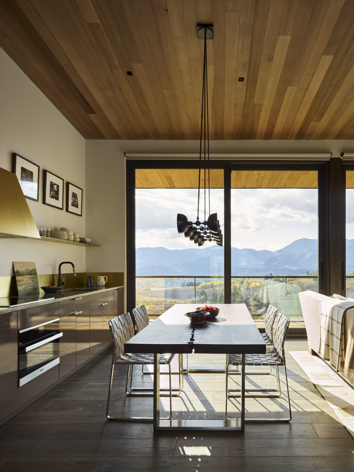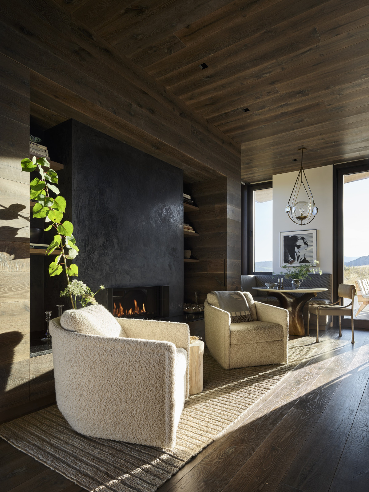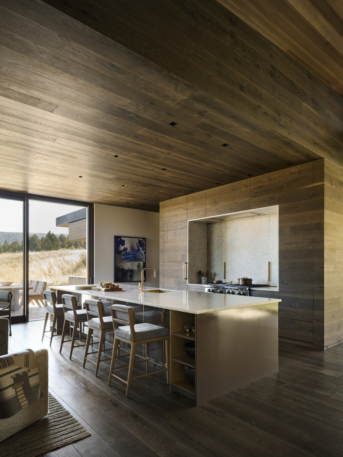 Nieruchomość o powierzchni 800 m2 znajduje się w miasteczku Jackson w stanie Wyoming. Do posiadłości prowadzi kręta droga, która stopniowo odsłania przed gośćmi wejście na posesję. Budynek został częściowo wkomponowany w zbocze wzgórza i mimo powierzchni oraz dwóch kondygnacji – zachowuje niski profil.