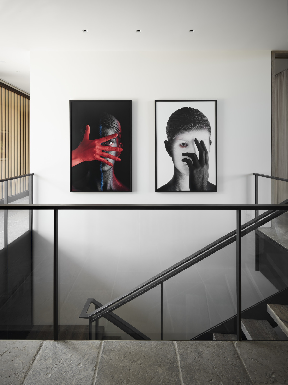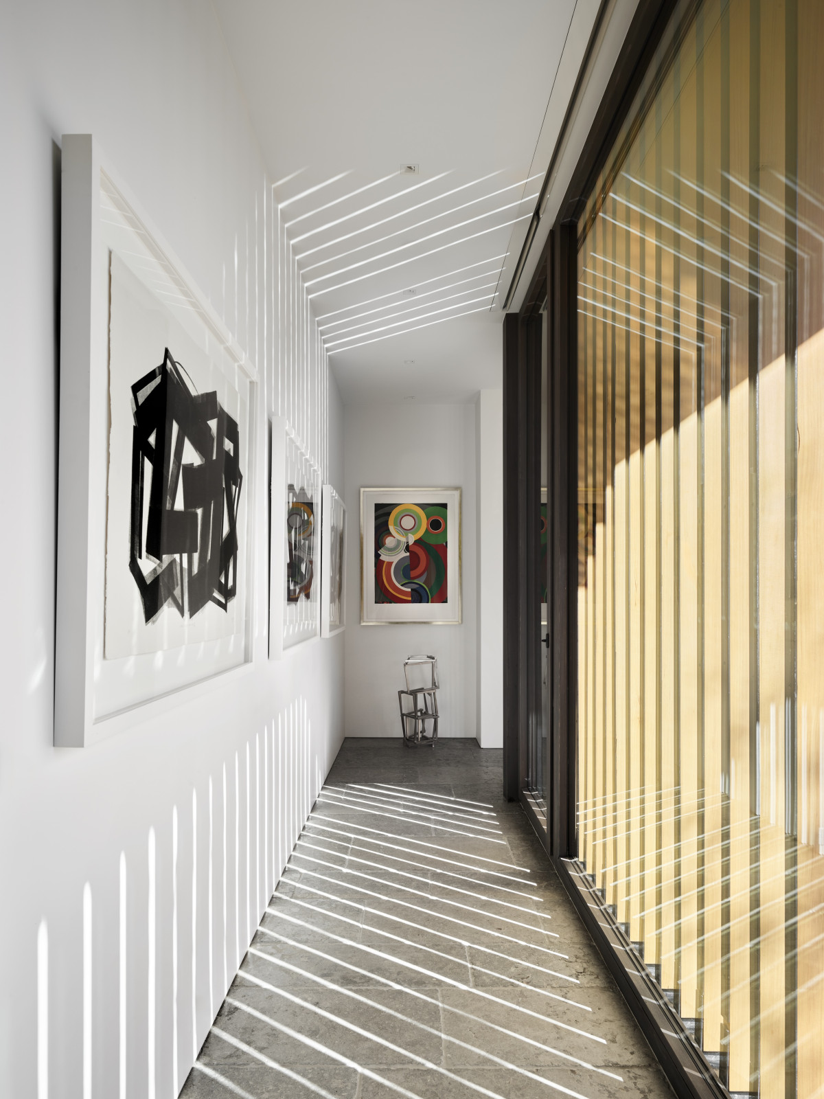 Prywatny dziedziniec wita przybywających rzeźbą autorstwa cenionego amerykańskiego artysty, Jedda Novatta. Jest to jedno z najważniejszych dzieł w kolekcji właścicieli. Kompozycja złożona z przecinających się sześciennych form zainspirowała również język architektoniczny posiadłości, szczególnie jej warstwową geometrię i sposób budowania przestrzeni.