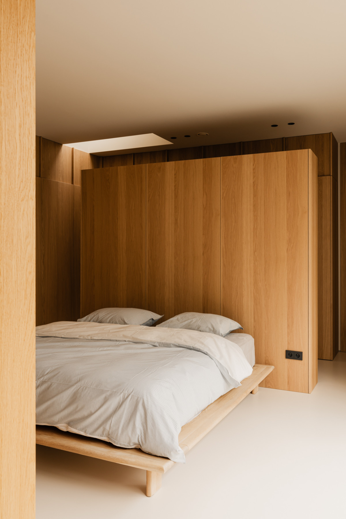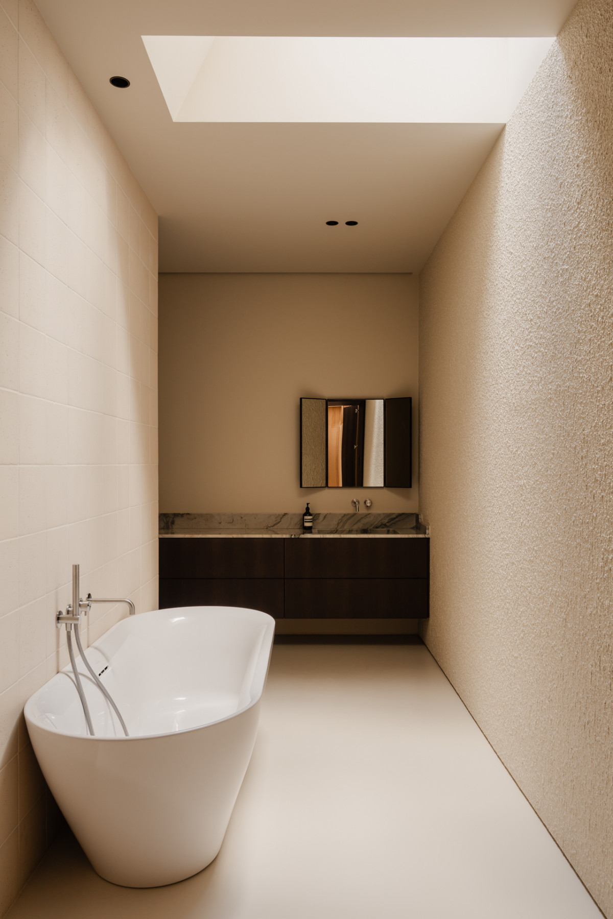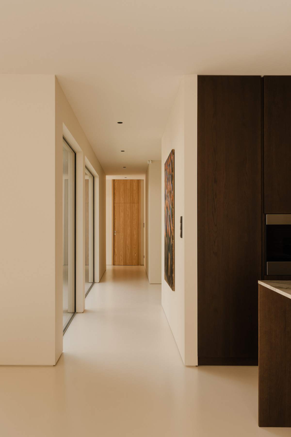 Serce domu stanowi centralne atrium z małym ogrodem, nawiązujące m.in. do japońskiej architektury. To półotwarte wnętrze w środku budynku pozwala mieszkańcom na bezpośredni kontakt z przyrodą, zapewniając jednocześnie prywatność, spokój i przestrzeń do wypoczynku.