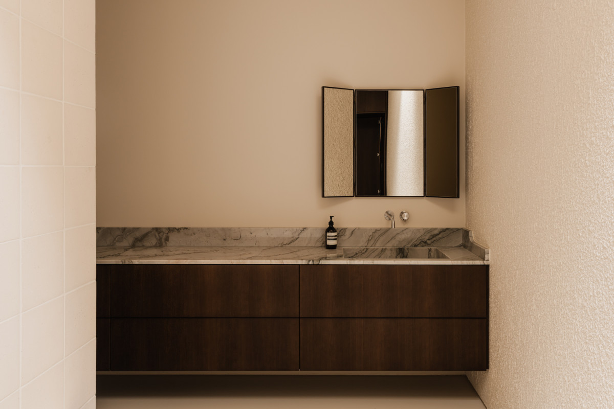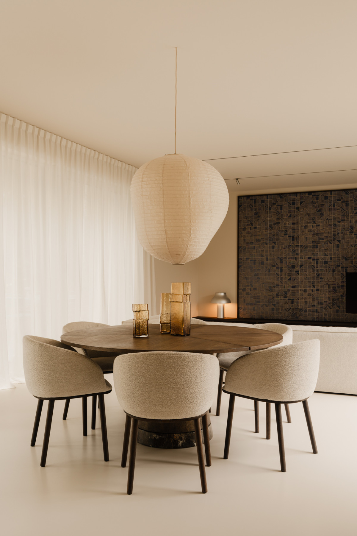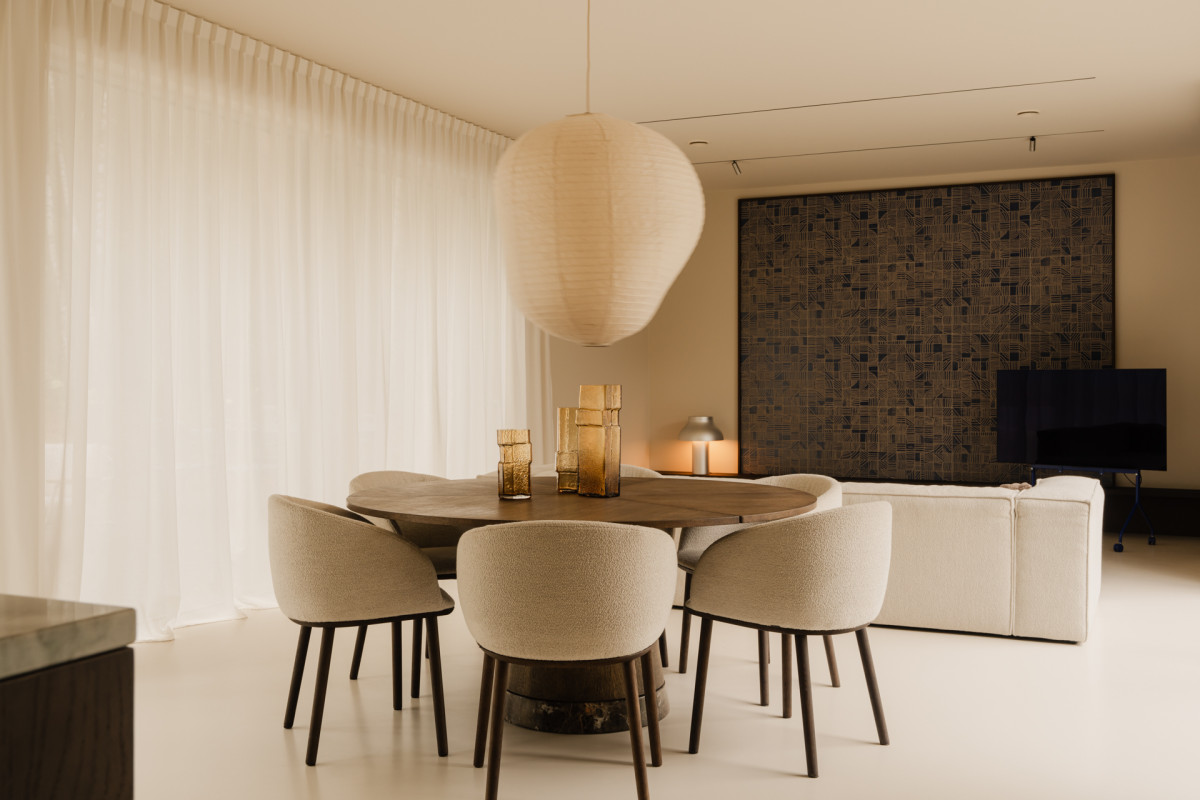 Serce domu stanowi centralne atrium z małym ogrodem, nawiązujące m.in. do japońskiej architektury. To półotwarte wnętrze w środku budynku pozwala mieszkańcom na bezpośredni kontakt z przyrodą, zapewniając jednocześnie prywatność, spokój i przestrzeń do wypoczynku.