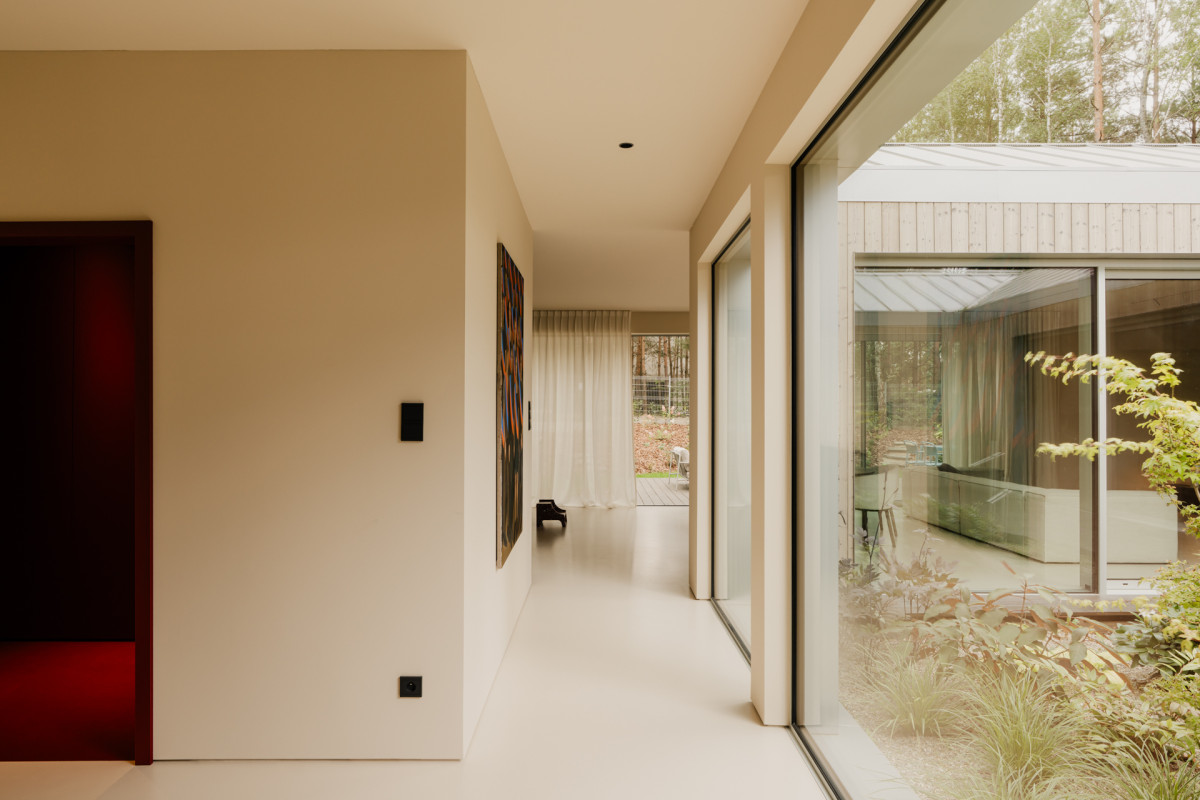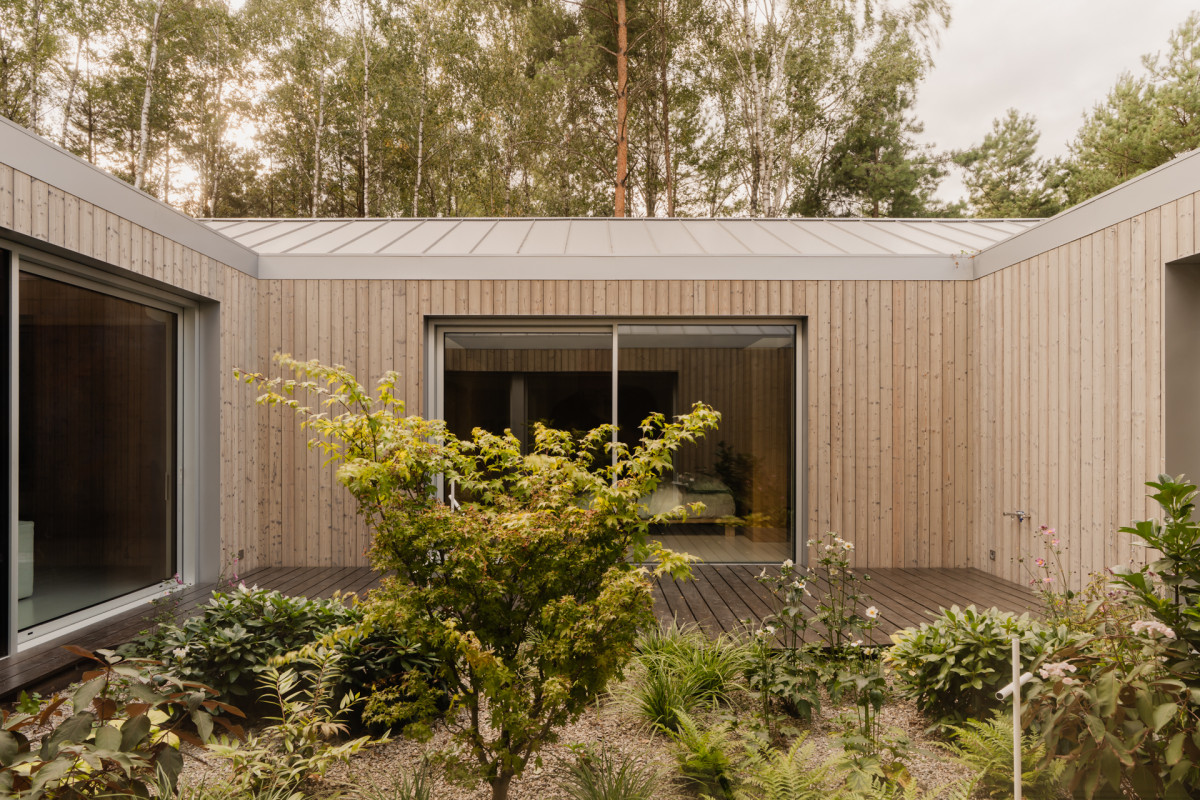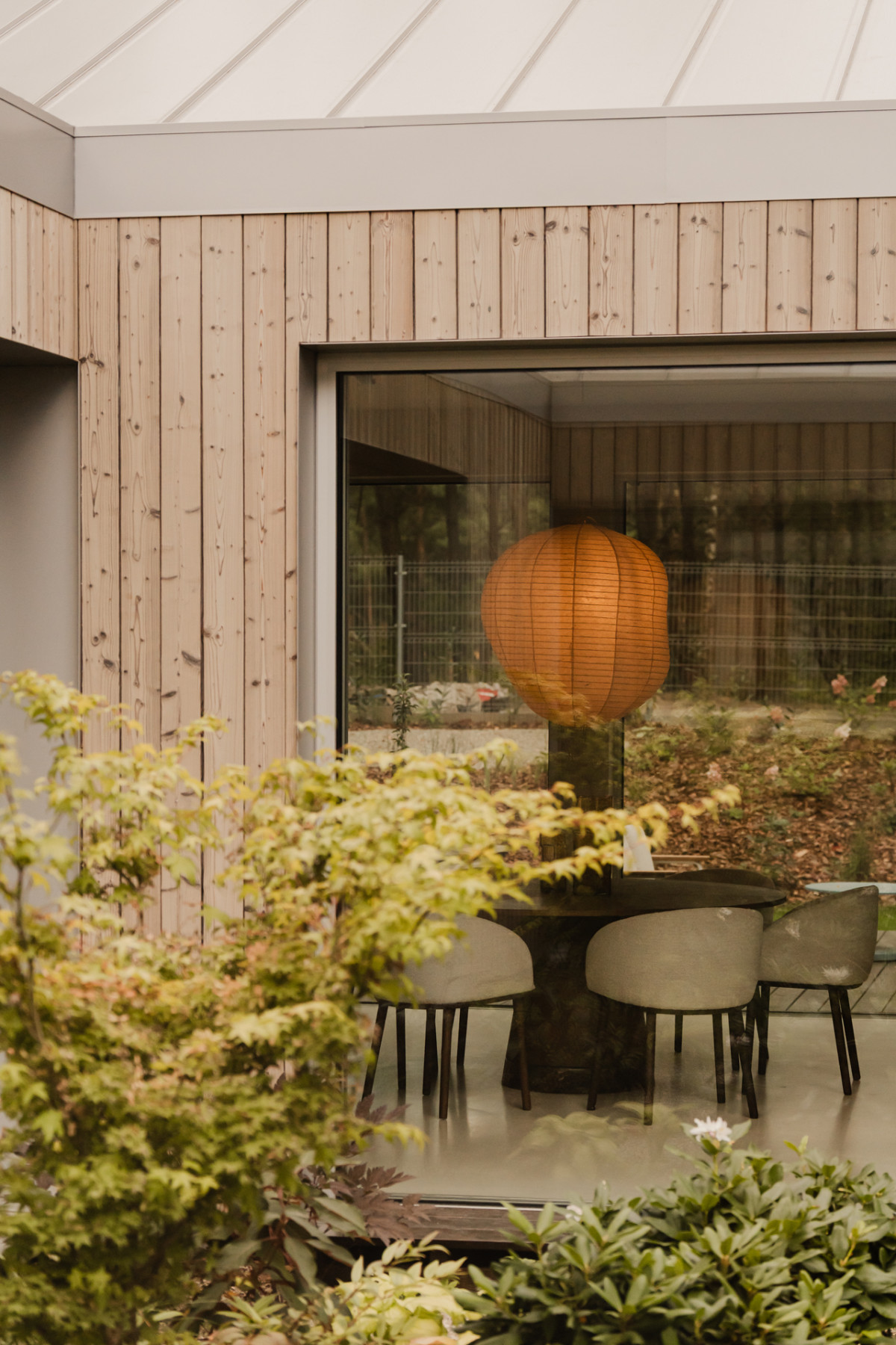 Dom zaprojektowany przez Kamila Korusa z pracowni Minimum Architects łączy nowoczesność z naturalnością, oferując mieszkańcom komfort, ciszę i poczucie zanurzenia się w lesie, przy jednoczesnym zachowaniu wysokich standardów funkcjonalnych i estetycznych. To przykład architektury, która nie dominuje nad krajobrazem, lecz współistnieje z nim – otwierając się na światło, zieleń i rytm przyrody.