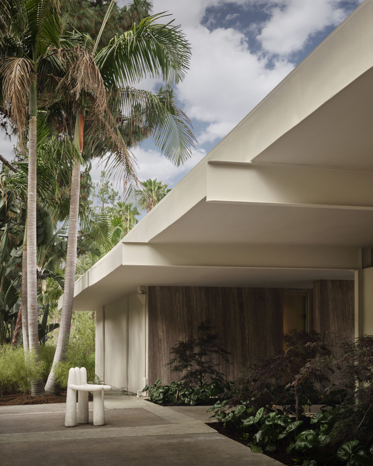 Projektując zieleń, Arya i Michael inspirowali się swoimi podróżami do Japonii. Atrium na wzór japońskiego ogrodu pokryto importowanymi trawami imitującymi mech. Przestrzeń wypełniły cztery sosny bonsai, które dodatkowo kadrują główny widok z salonu, centralnego korytarza i jadalni.