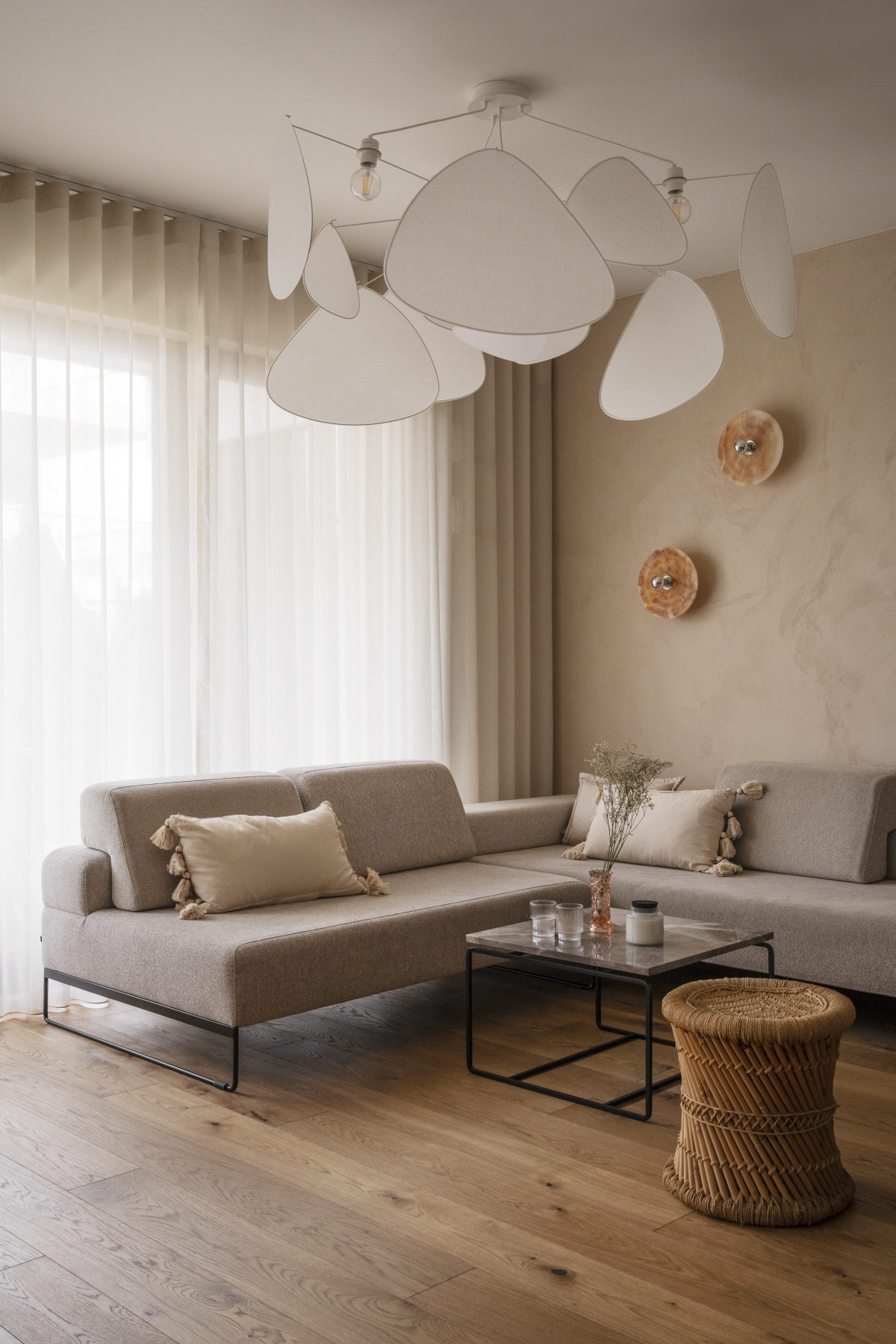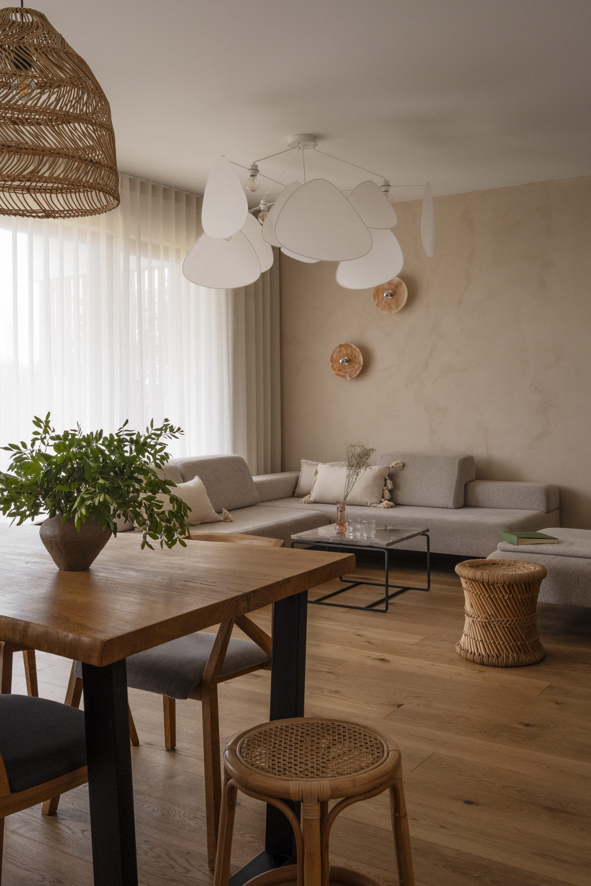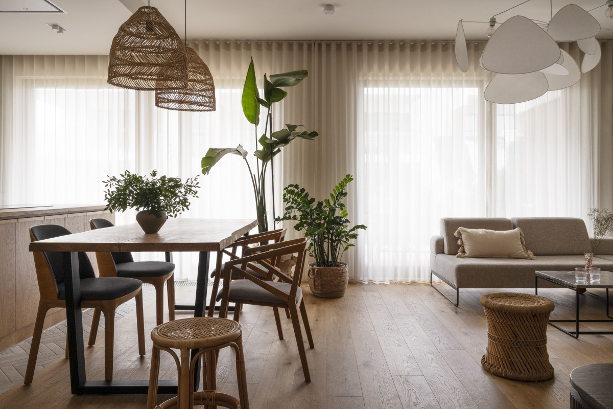 Styl mieszkania został określony przez projektantkę mianem „wyspowego minimalizmu”. - Mamy tu ogrom drewna łączonego z surowością prostego tynku i mnogością naturalnych materiałów. Jest kamień w różnych obliczach, są plecione stołeczki, lampy i tekstylia o zróżnicowanych fakturach – mówi Dominika Wojciechowska.