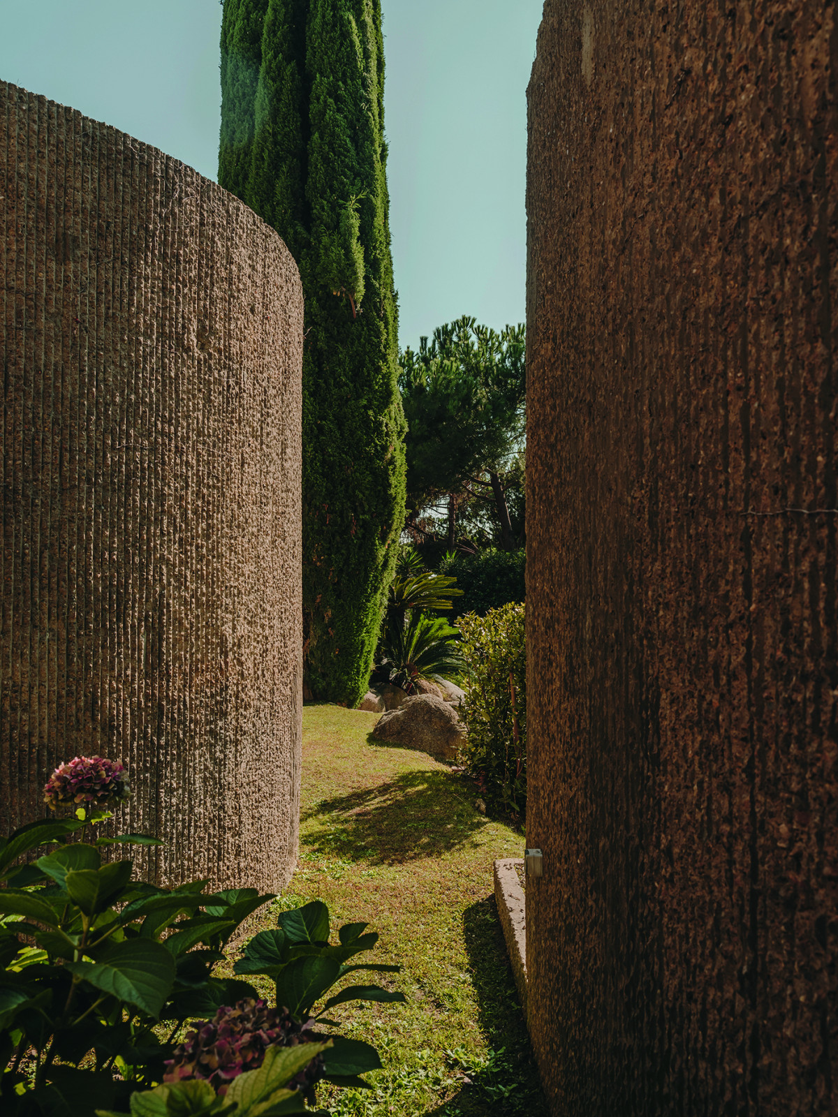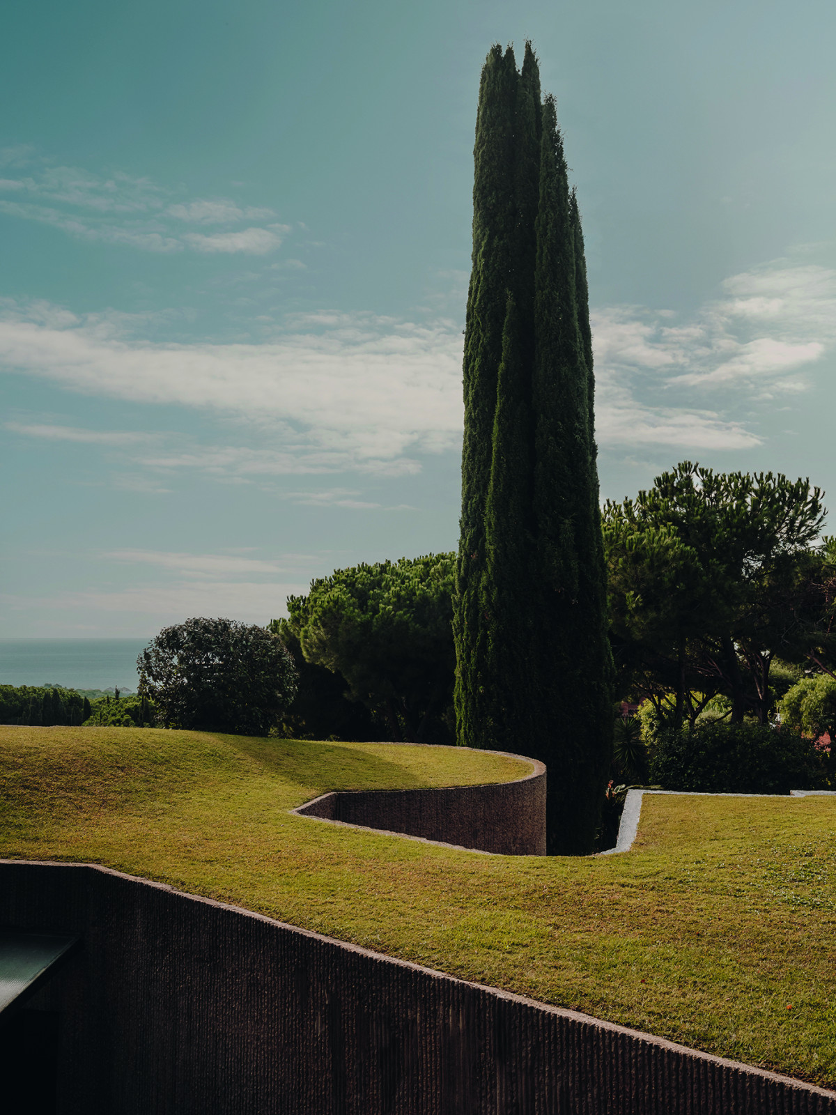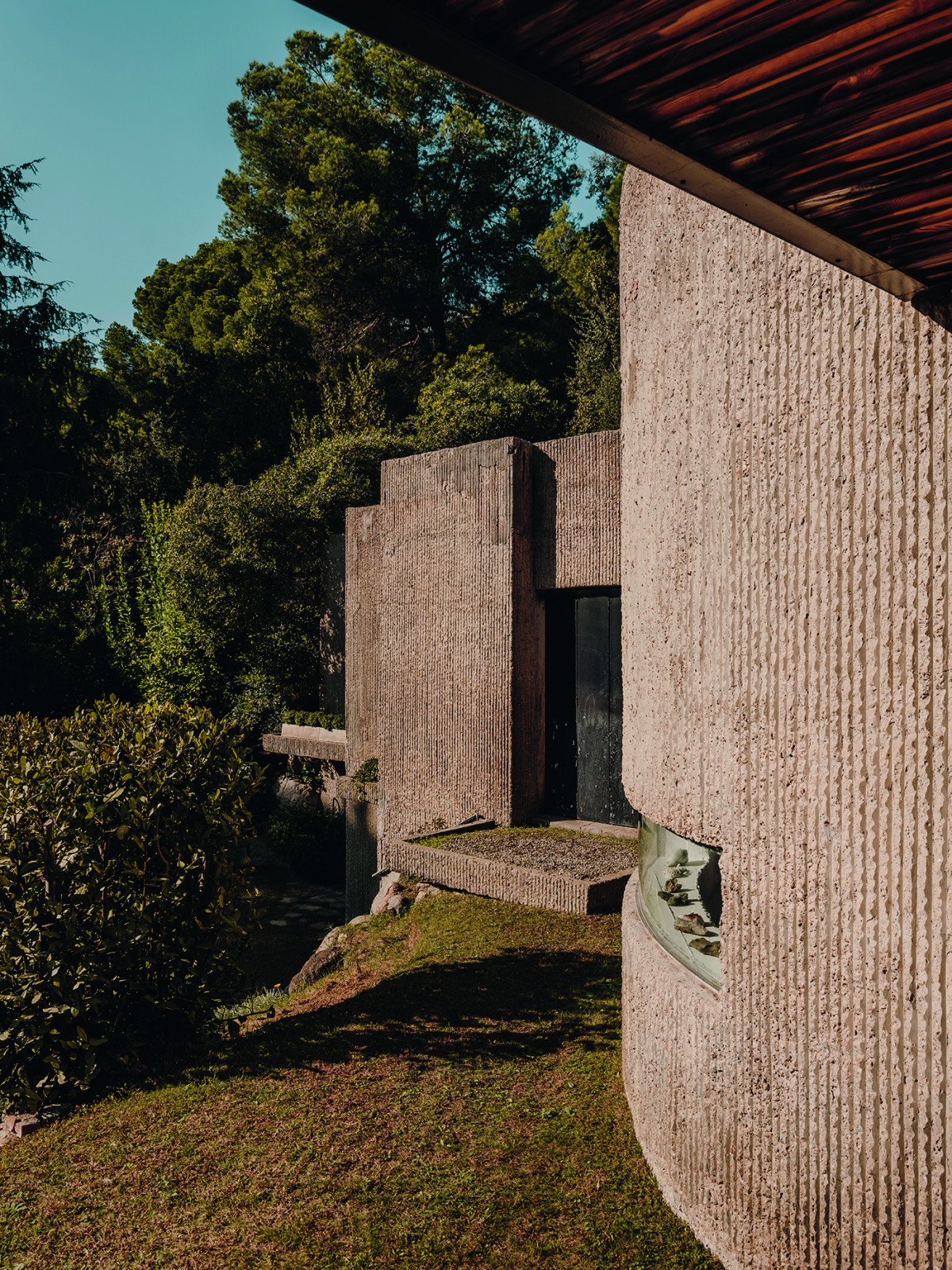 Do położonej na wzgórzu Casa Riera można dojechać polną drogą, która oferuje spektakularne widoki na Morze Śródziemne i sosnowy las. Jak wspomina Barba, przed rozpoczęciem realizacji spędził tam wiele dni, spacerując po działce o różnych porach dnia, „aby lepiej poznać topografię i lokalną roślinność”. W końcu doszedł do wniosku, że zagłębiona w terenie bryła z ogrodem na dachu będzie najlepszym rozwiązaniem na zintegrowanie architektury z krajobrazem. To dlatego budynek doczekał się też alternatywnej nazwy Casa Semienterrada, czyli „dom na wpół zakopany”. Dzięki zielonemu dachowi architekt jednocześnie zapewnił konstrukcji naturalną izolację termiczną i akustyczną. Jego celem od początku było również „stworzenie efektownej fasady, która imitując występujące tu granitowe skały, wpisywałaby się w otoczenie”. Beton zmieszany z kwarcem, skaleniem i miką w pełni oddaje to założenie, a grube ściany pozwalają na znaczne oszczędności energii.