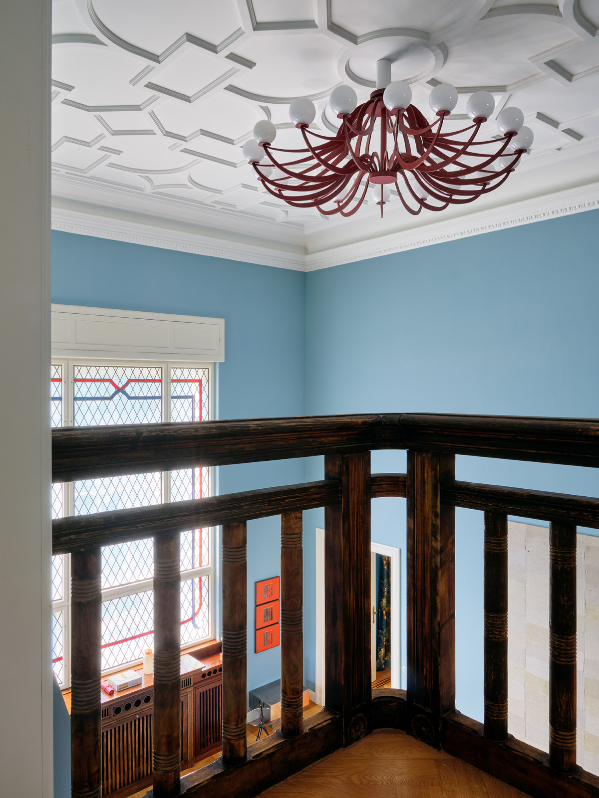 Czterokondygnacyjna willa w stylu bawarskim powstała w 1890 roku dla właściciela pobliskiego browaru. – Na przestrzeni lat budynek pełnił wiele funkcji, w czasach NRD służył m.in. jako dom spokojnej starości. Potem popadł w ruinę. Zawalił się dach, a salonie wyrosło drzewo – opowiada Pöppler. Na początku bieżącego stulecia obiekt kupiła kolekcjonerka sztuki i przeprowadziła gruntowny remont. Dziś dom należy do trzypokoleniowej rodziny. To rodzice z dwiema dorosłymi córkami, ich mężami i dziećmi. Na co dzień mieszkają w różnych miejscach. Tu spotykają się podczas świąt i wakacji, by razem spędzać czas. – Dość często korzystają z willi; czasami nocuje tu nawet 20 osób. Co roku odbywa się wielkie przyjęcie z udziałem przyjaciół, znajomych i sąsiadów – dodaje projektant.