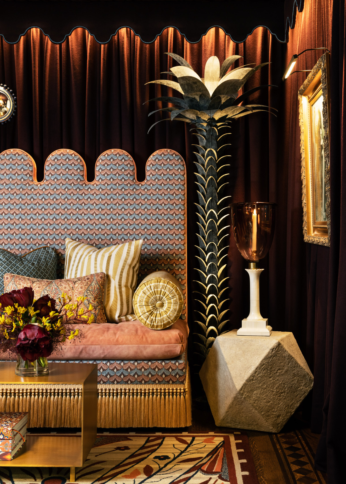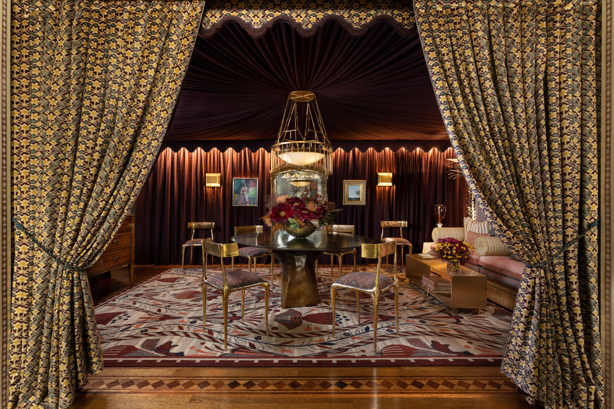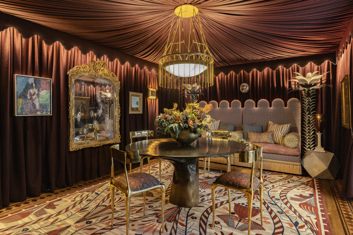 Jak wspomina Julie Rootes, na zaaranżowanie tej jadalni miała zaledwie 4 miesiące, przy czym nie wolno jej było ingerować ani modyfikować istniejącej architektury. Projektantka zdecydowała się więc ją zakryć, tworząc w pomieszczeniu coś na wzór ekskluzywnego namiotu.