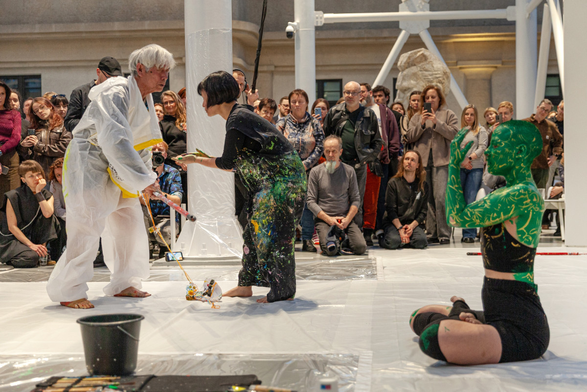 Performans Yoshio Nakajimy podczas wernisażu wystawy w Pawilonie Czterech Kopuł, 28.02.2026, fot. A. Podstawka