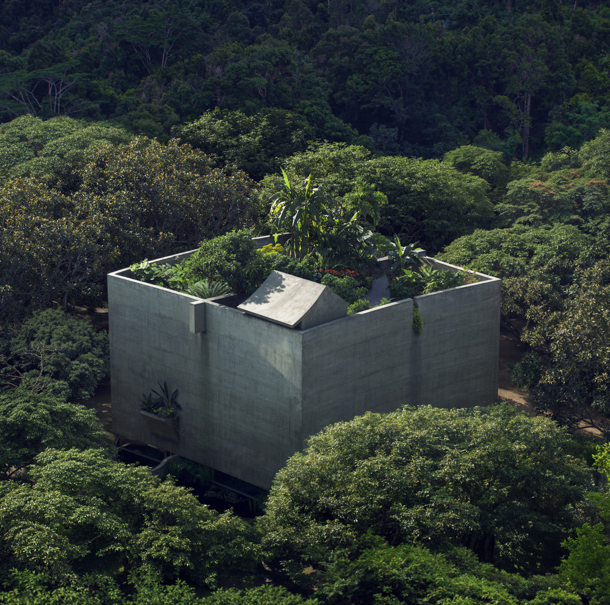 Projekt ideowy sali koncertowej Neojiba w brazylijskim Salvadorze. Otoczona tropikalnym lasem betonowa konstrukcja na słupach miałaby służyć lokalnej orkiestrze dziecięcej, łącząc w idealnej symbiozie architekturę, naturę i muzykę. Wizualizacja: Leopold Banchini Architects
