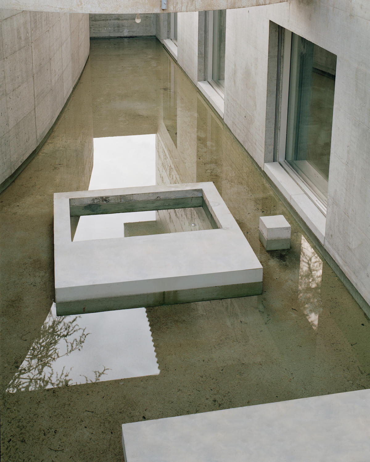 Willa Montasser. Płytka sadzawka na patio poniżej poziomu gruntu zasilana jest deszczówką. Wychodzą na nią okna sypialni i łazienki. Zdjęcie: Rory Gardiner