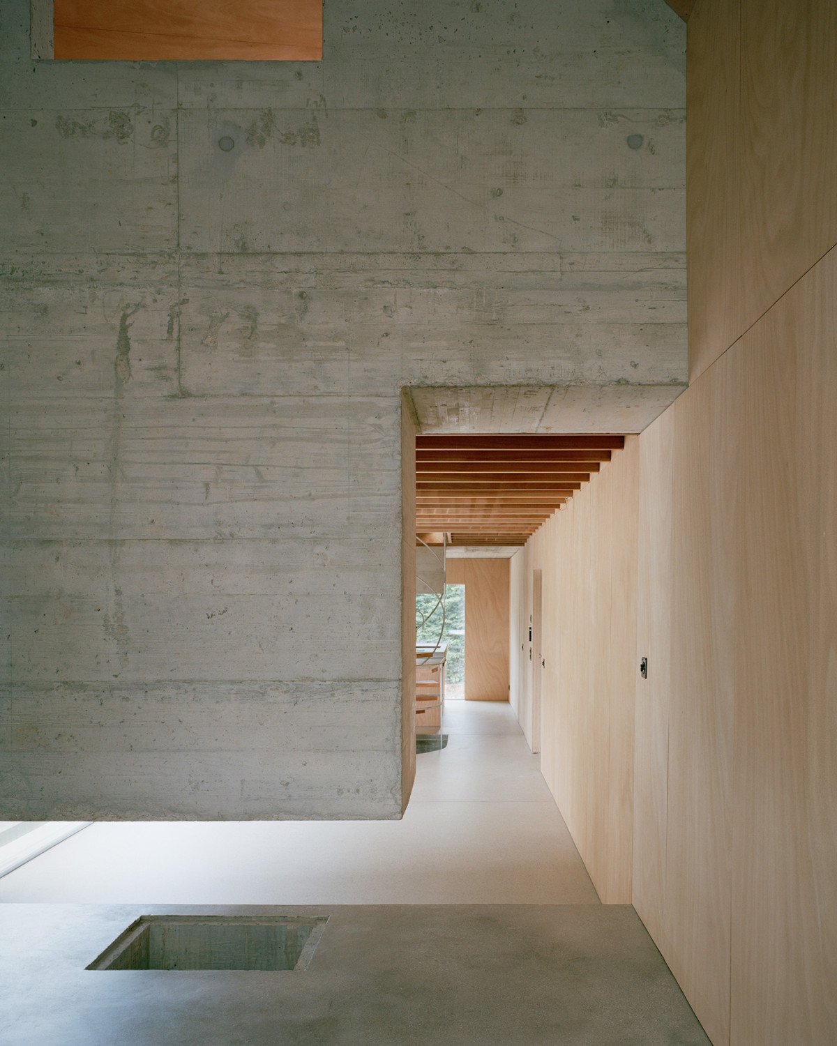 We wnętrzach willi Montasser w Mies nad Jeziorem Genewskim (2024) surowy beton skontrastowano z drewnem okoume. Zdjęcie: Rory Gardiner