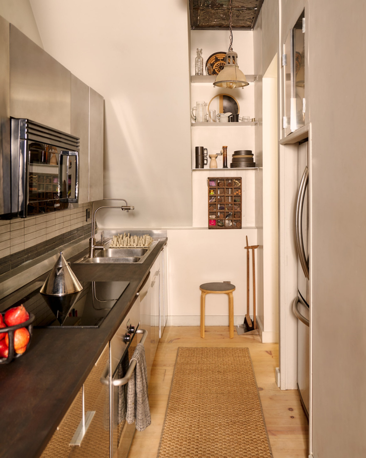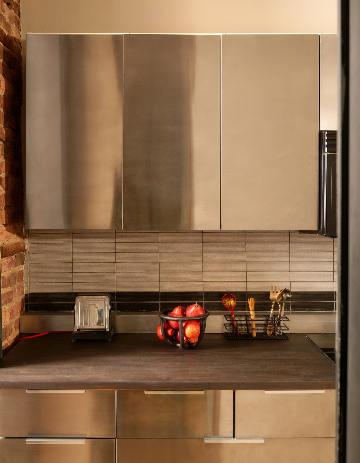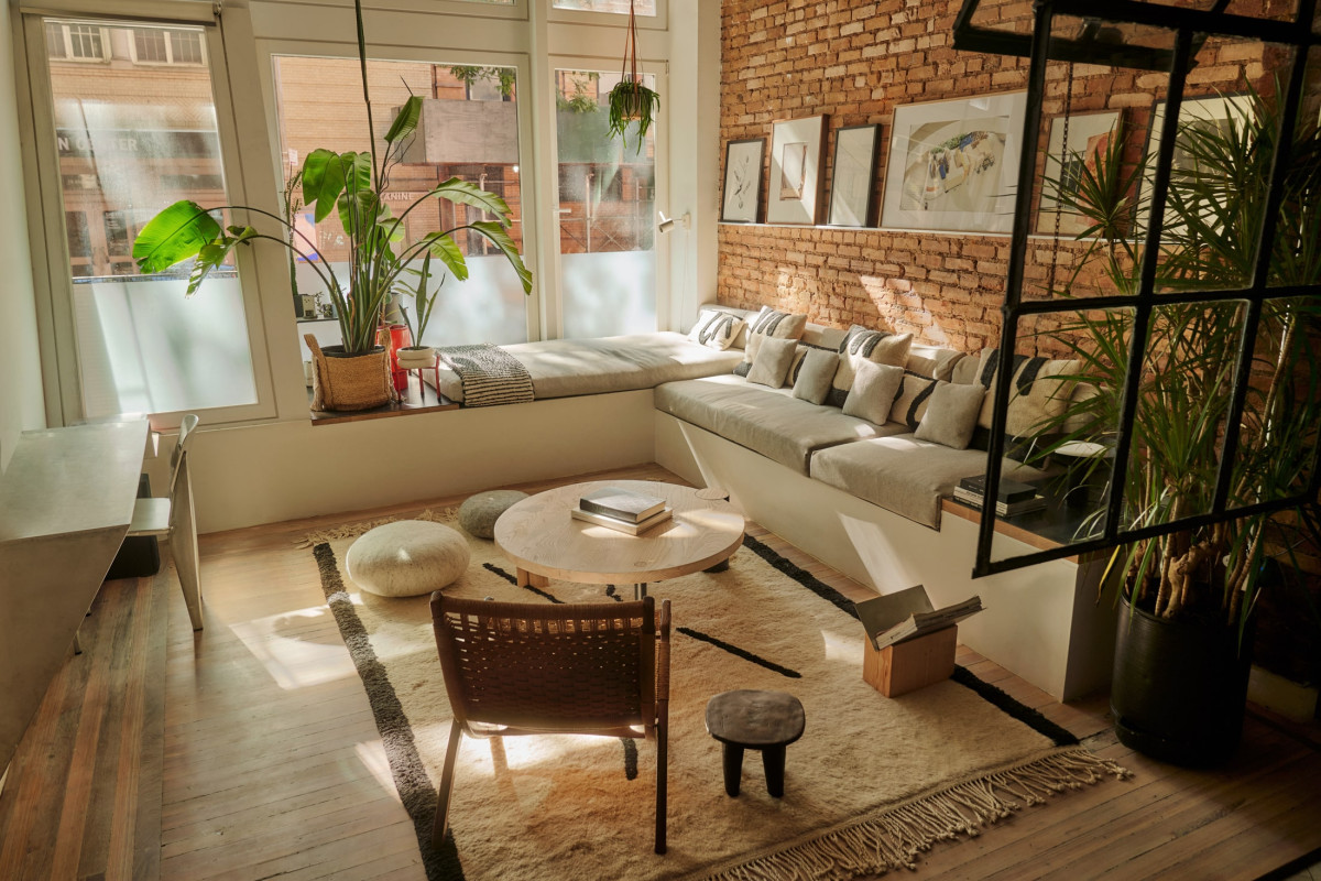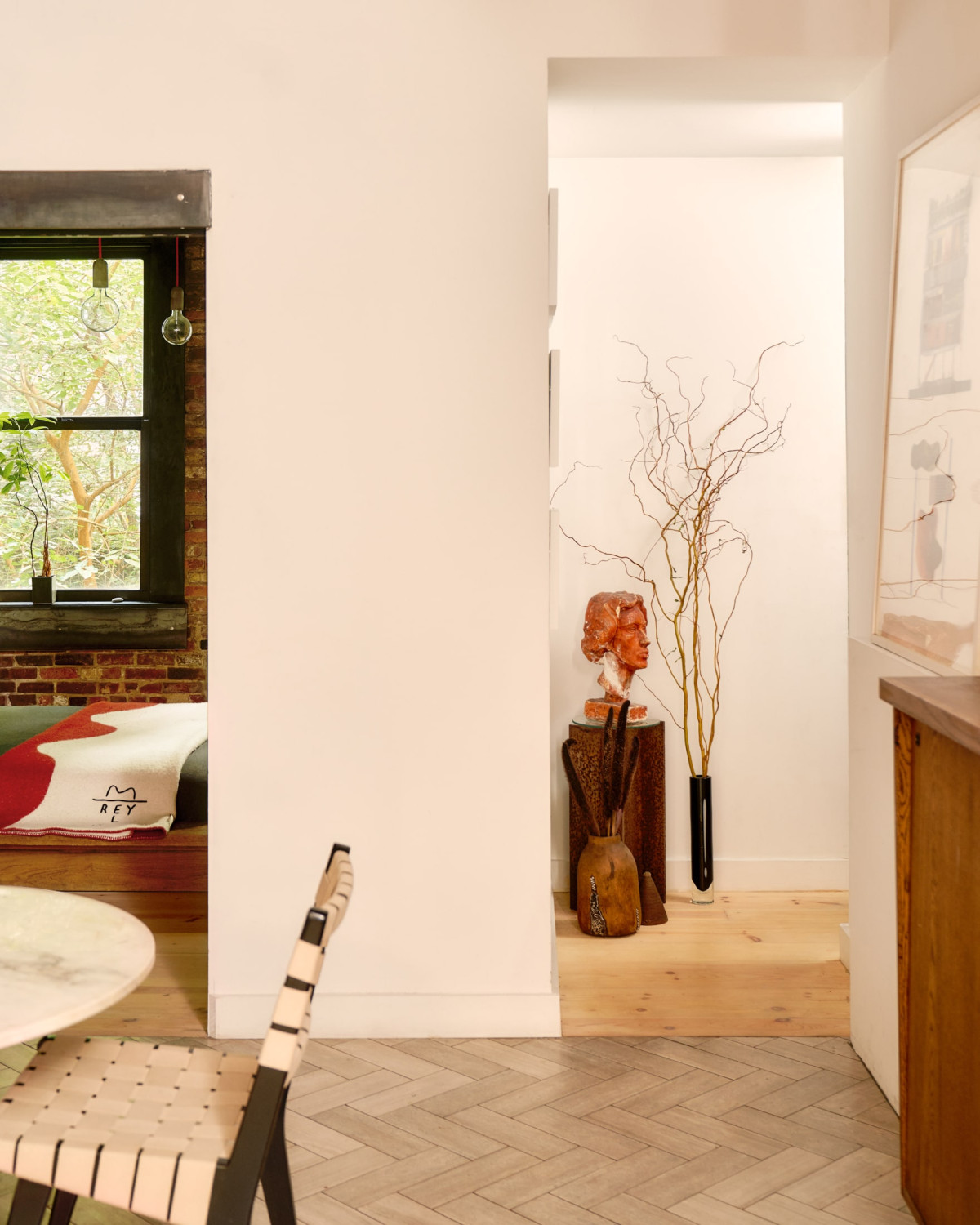 „Podczas gdy większość NoHo stała się eleganckimi rezydencjami dla ultrabogatych, 21 Bleecker wciąż pozostaje nieco nieokrzesanym kooperatywem dla twórców” – mówi projektant i właściciel, Gabriel Yuri. „Walczę o zachowanie jak najwięcej oryginalnego charakteru budynku, zarówno w moim lofcie, jak i w częściach wspólnych, takich jak oryginalny mural Florence Mission w wejściu.”