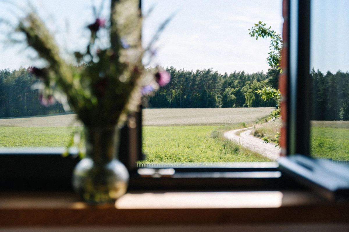 Jola i Daniel: Naszym gościom powierzamy siedlisko w pełni do ich dyspozycji — z ogromnym zaufaniem. Prostota jest tu kluczem. Życie w Jaskółczym Polu toczy się w rytmie natury. Dla nas dzień zaczyna się kawą na tarasie i spacerem po lesie, a kończy przy wspólnym stole albo pod kocem, przy kominku. Pomiędzy nimi jest ogród, rozmowy, cisza — czasem praca, czasem leniwe nicnierobienie.