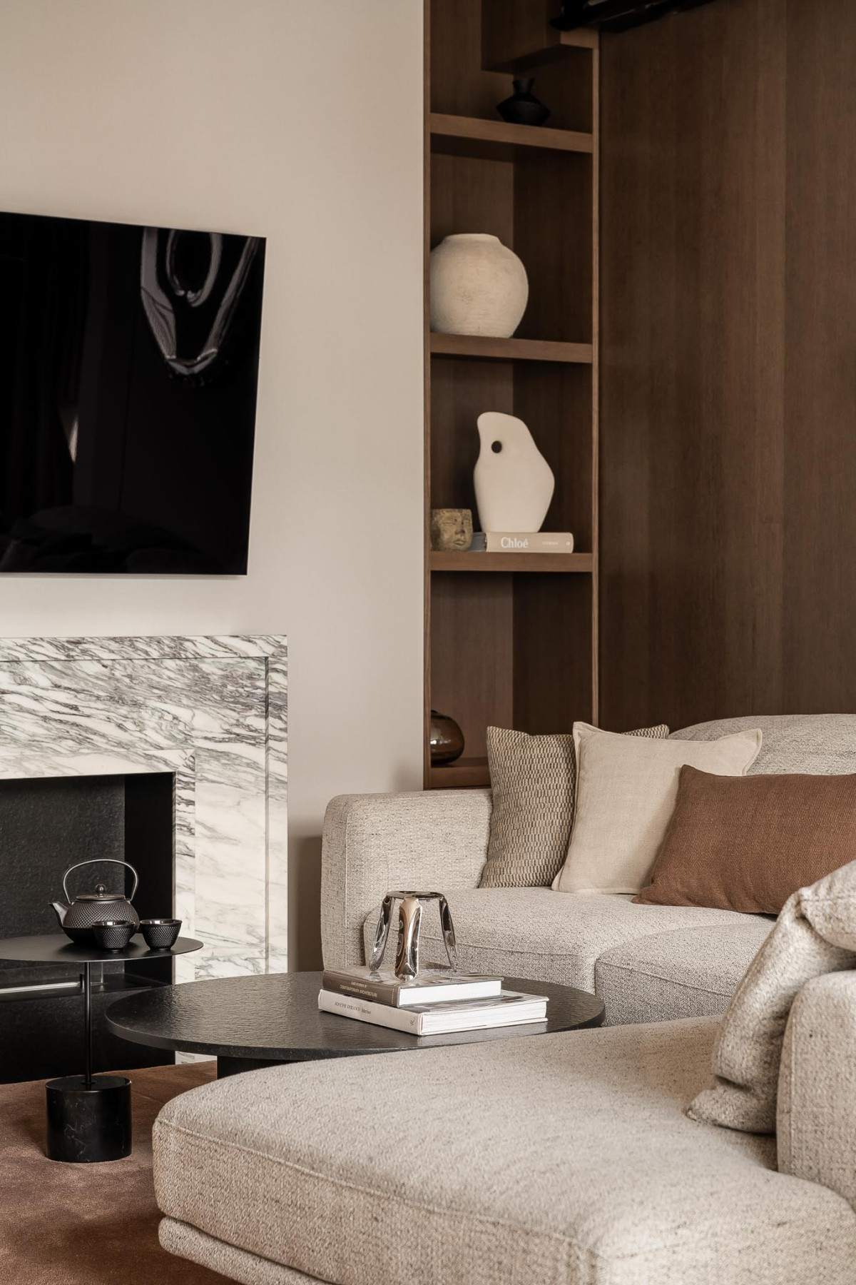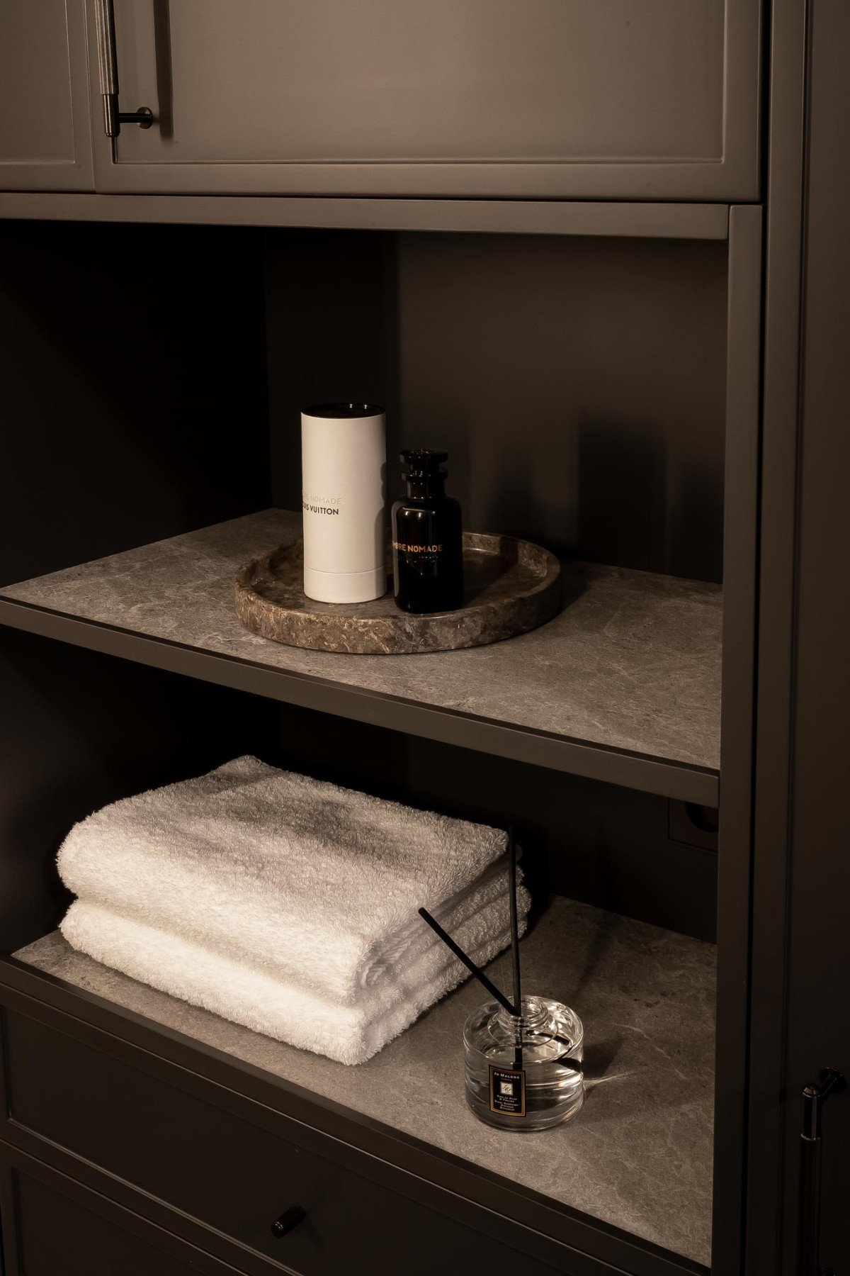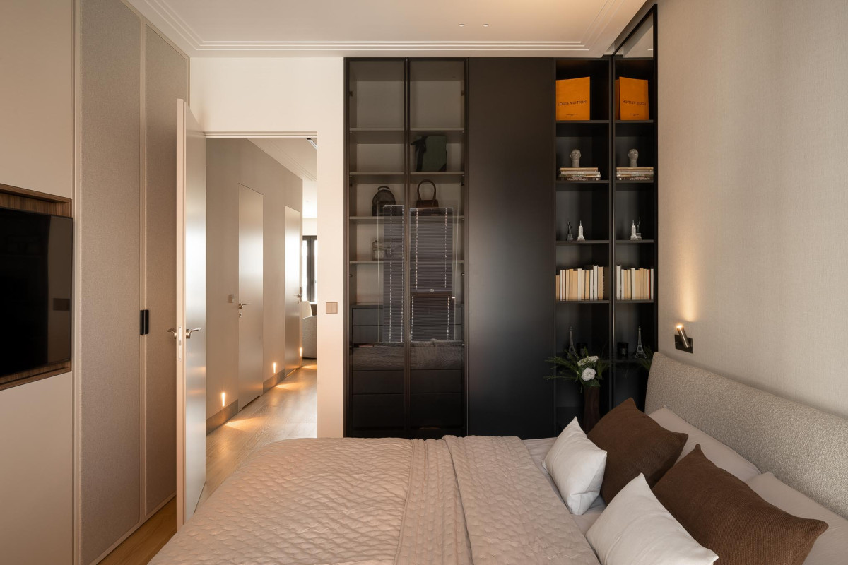 Co szczególnie ważne, mnóstwo przedmiotów jest ukrytych. Nikną w obszernych zabudowach oraz pomysłowych schowkach. Można je znaleźć nawet w (pozornie monolitycznym) cokole umywalki w małej łazience czy za ekranem telewizora w sypialni.