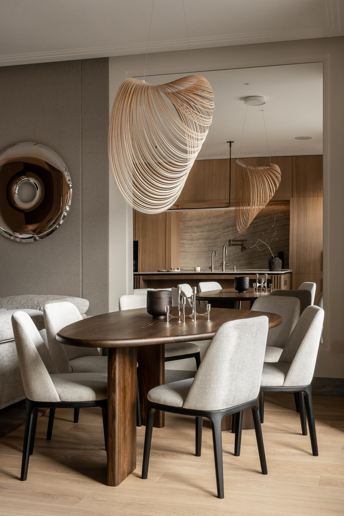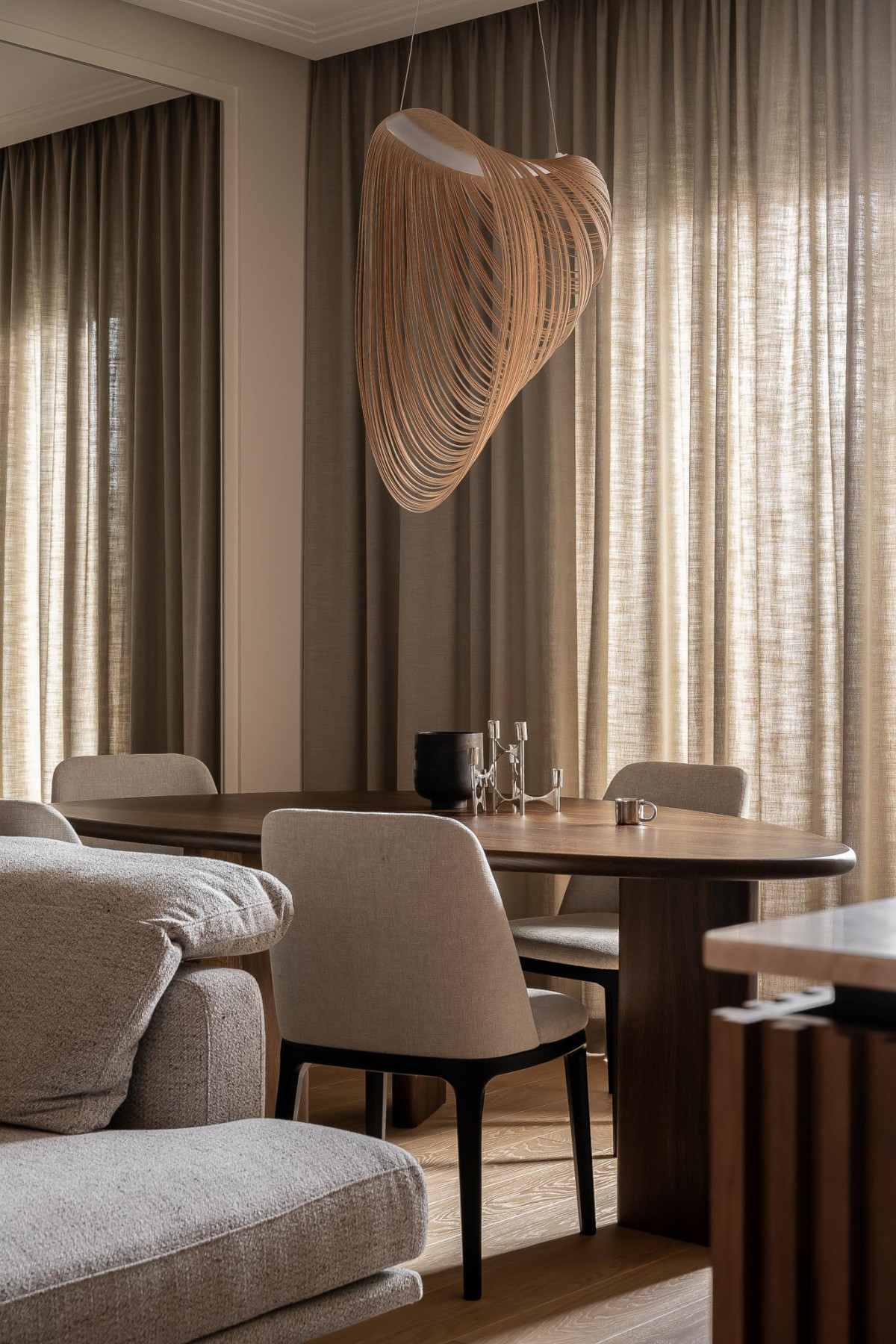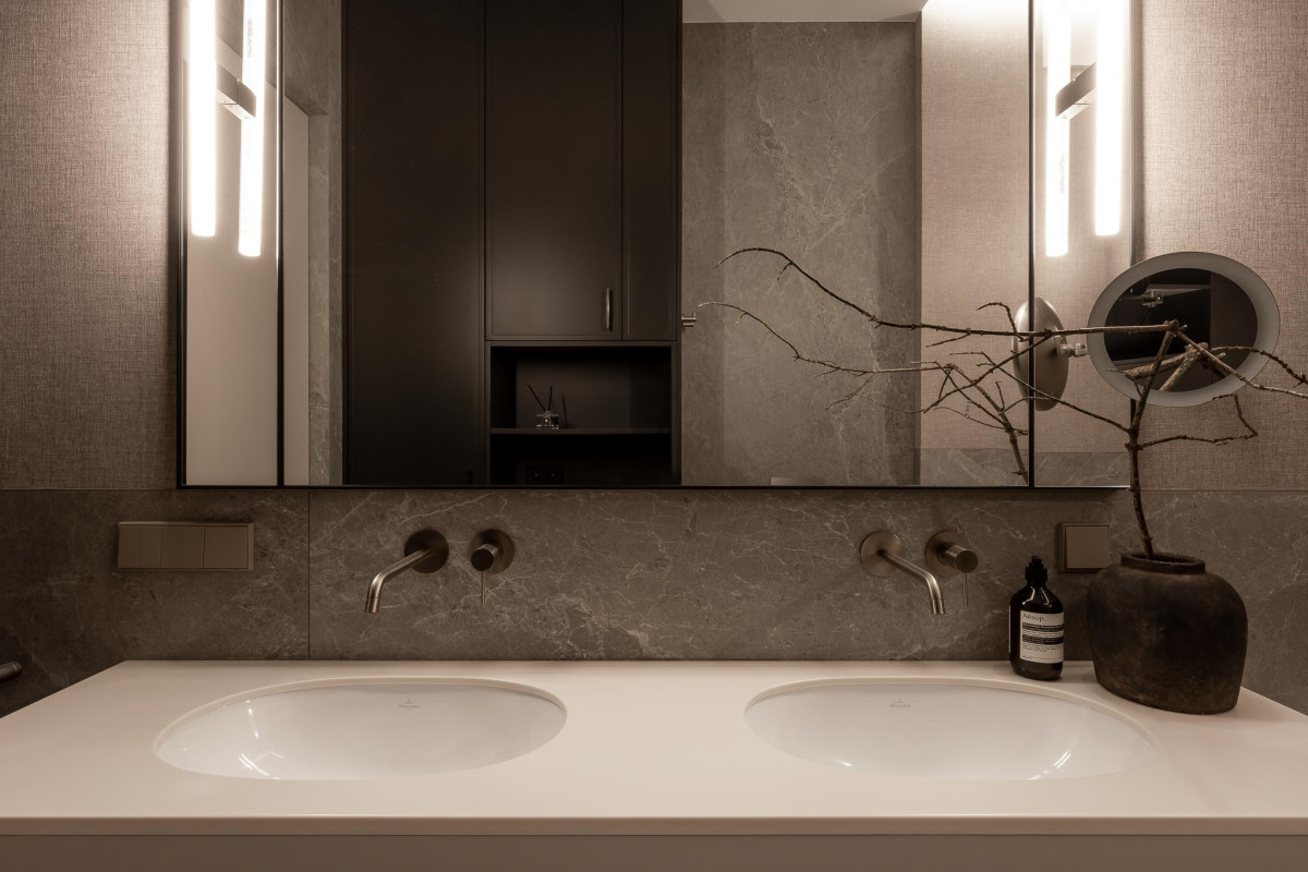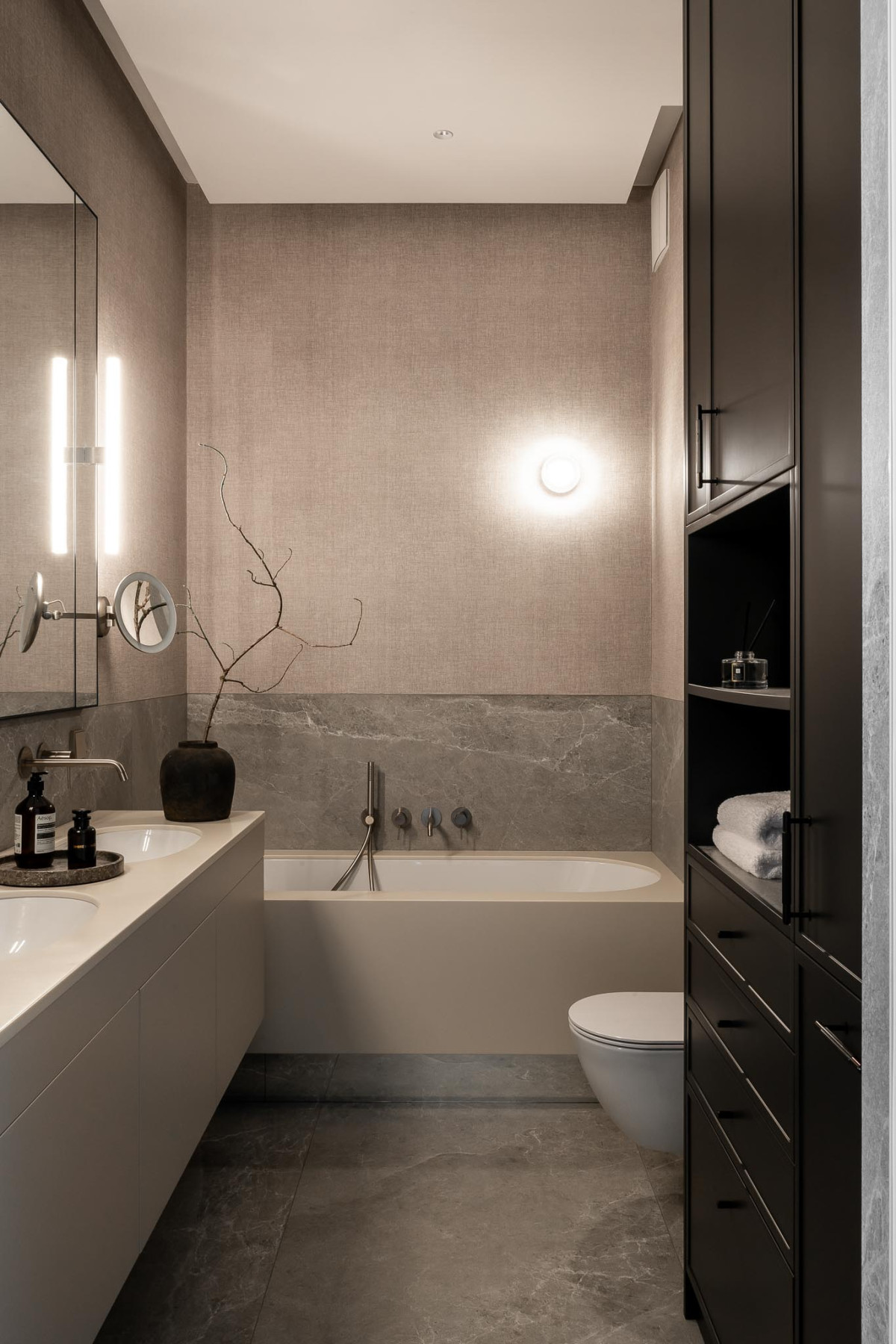 Choć mieszkanie jest bardzo atrakcyjne wizualnie, projektantce w tej samej mierze zależało praktycznym aspekcie wnętrz. Musiało być łatwe do utrzymania w czystości. Dlatego wybrała m.in. zlicowane ze ścianą listwy przypodłogowe ze spieku kwarcowego, odporne na uderzenia i szorowanie. A blat kuchenny zdecydowała się wykonać z ultrawytrzymałego kwarcytu Taj Mahal, który równocześnie w niszy nad blatem występuje w roli abstrakcyjnego obrazu. Ponadto tkaniny i tapety, choć tak miłe w dotyku, są zabezpieczone przed przyjmowaniem plam, a drewno pokryte trwałymi lakierami.