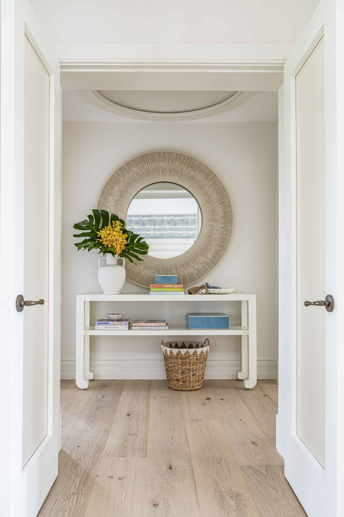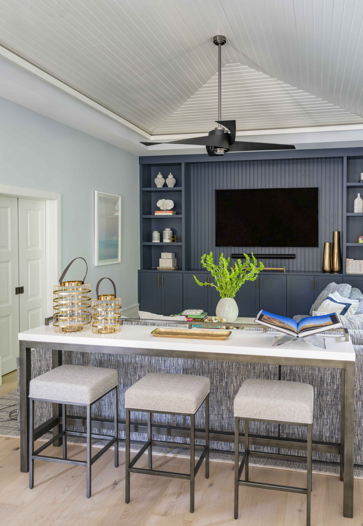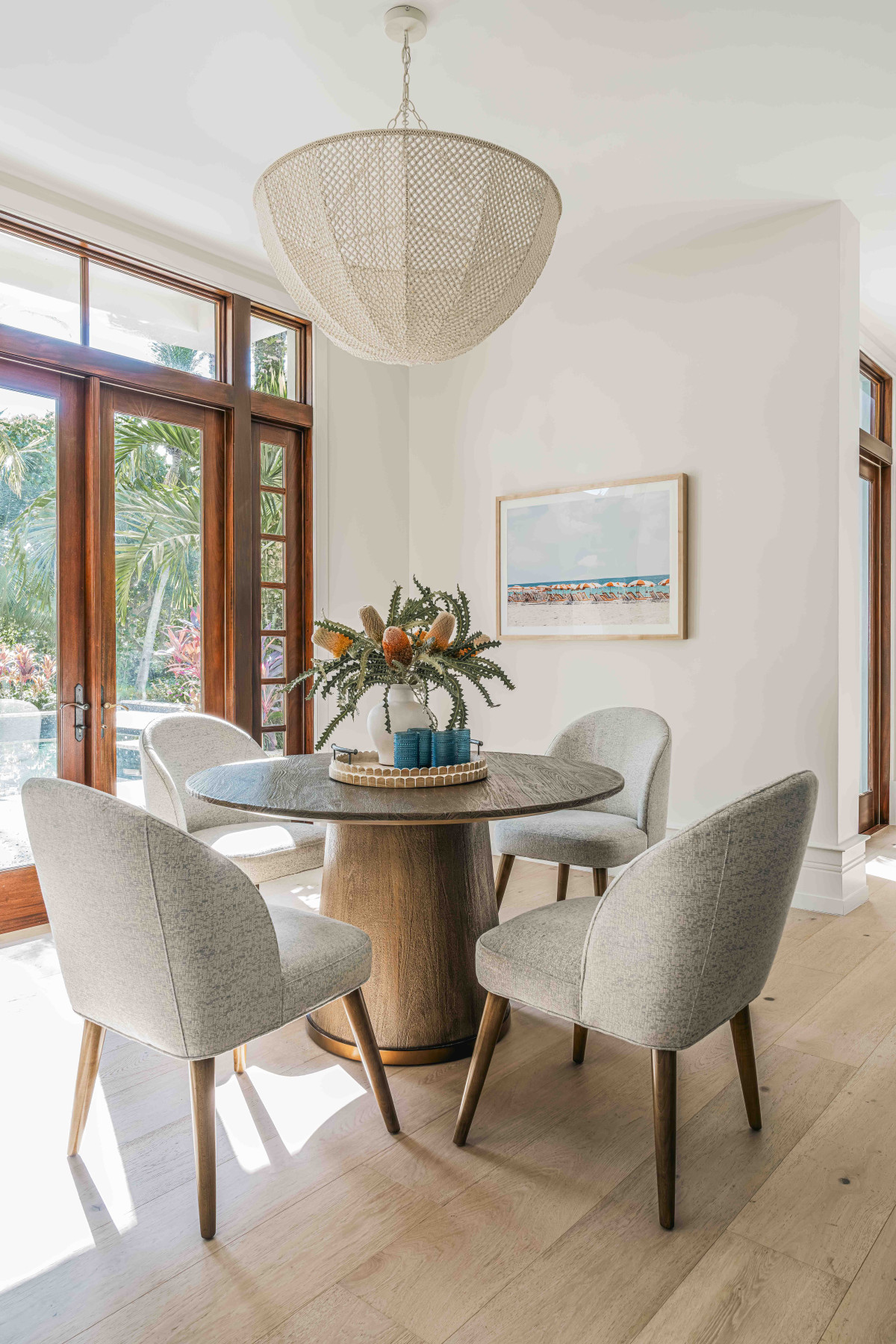Mimo że wnętrza domu nawiązują do swojego nadmorskiego dziedzictwa m.in. za pomocą pojawiającego się niemal w każdym pomieszczeniu koloru niebieskiego czy naturalnych materiałów, przestrzeń zaprojektowana przez Kristę Watterworth Alterman wcale nie próbuje wpisać się typ modnej nadmorskiej rezydencji. Wręcz przeciwnie. Projektantce i właścicielom zależało, by budynek sprawiał wrażenie, jak gdyby był tu od zawsze – wpisany w krajobraz i klimat Florydy.