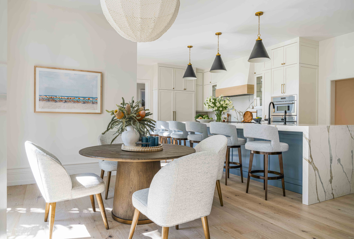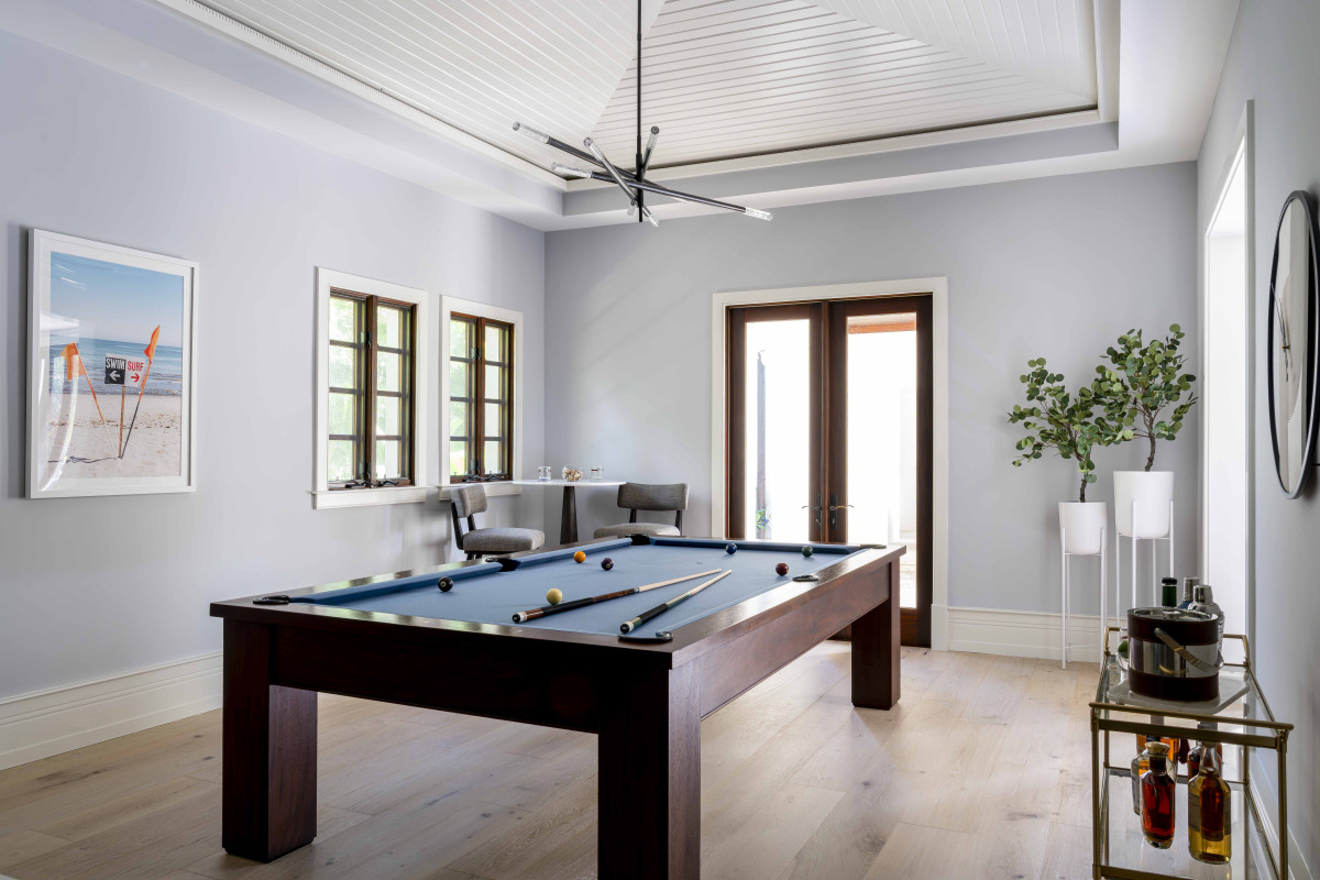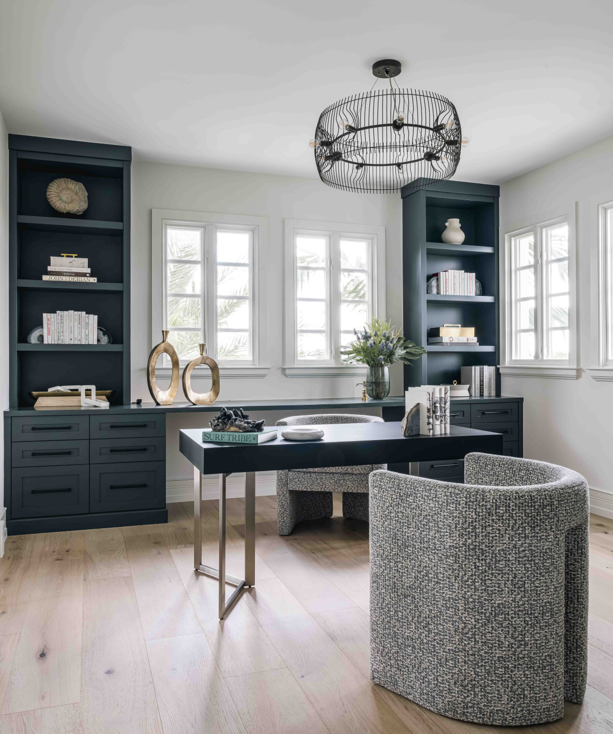 Mimo że wnętrza domu nawiązują do swojego nadmorskiego dziedzictwa m.in. za pomocą pojawiającego się niemal w każdym pomieszczeniu koloru niebieskiego czy naturalnych materiałów, przestrzeń zaprojektowana przez Kristę Watterworth Alterman wcale nie próbuje wpisać się typ modnej nadmorskiej rezydencji. Wręcz przeciwnie. Projektantce i właścicielom zależało, by budynek sprawiał wrażenie, jak gdyby był tu od zawsze – wpisany w krajobraz i klimat Florydy.
