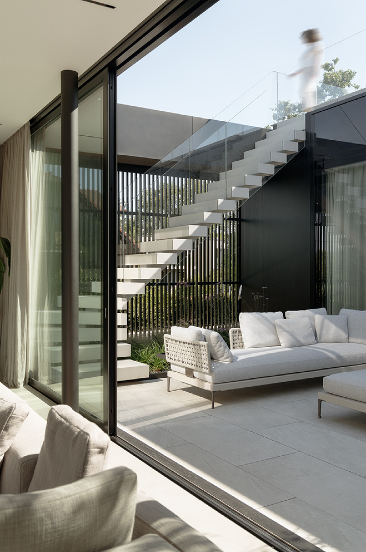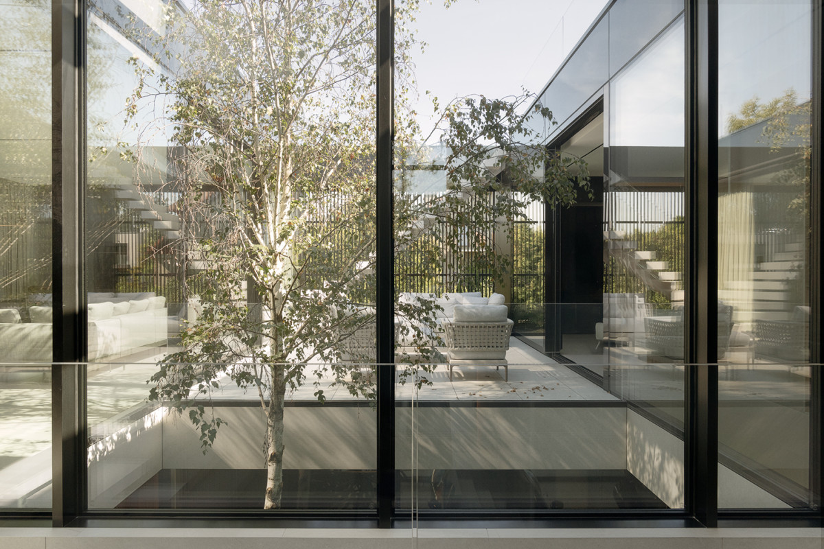 „Zaprojektowaliśmy przestrzeń tak, by z każdego miejsca w domu można było dostrzec zieleń – niezależnie od pory roku. Dzięki temu mieszkańcy mają poczucie bliskości natury nawet w sercu miasta” – podkreśla Anna Lorenz.
