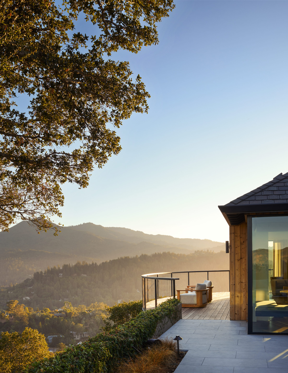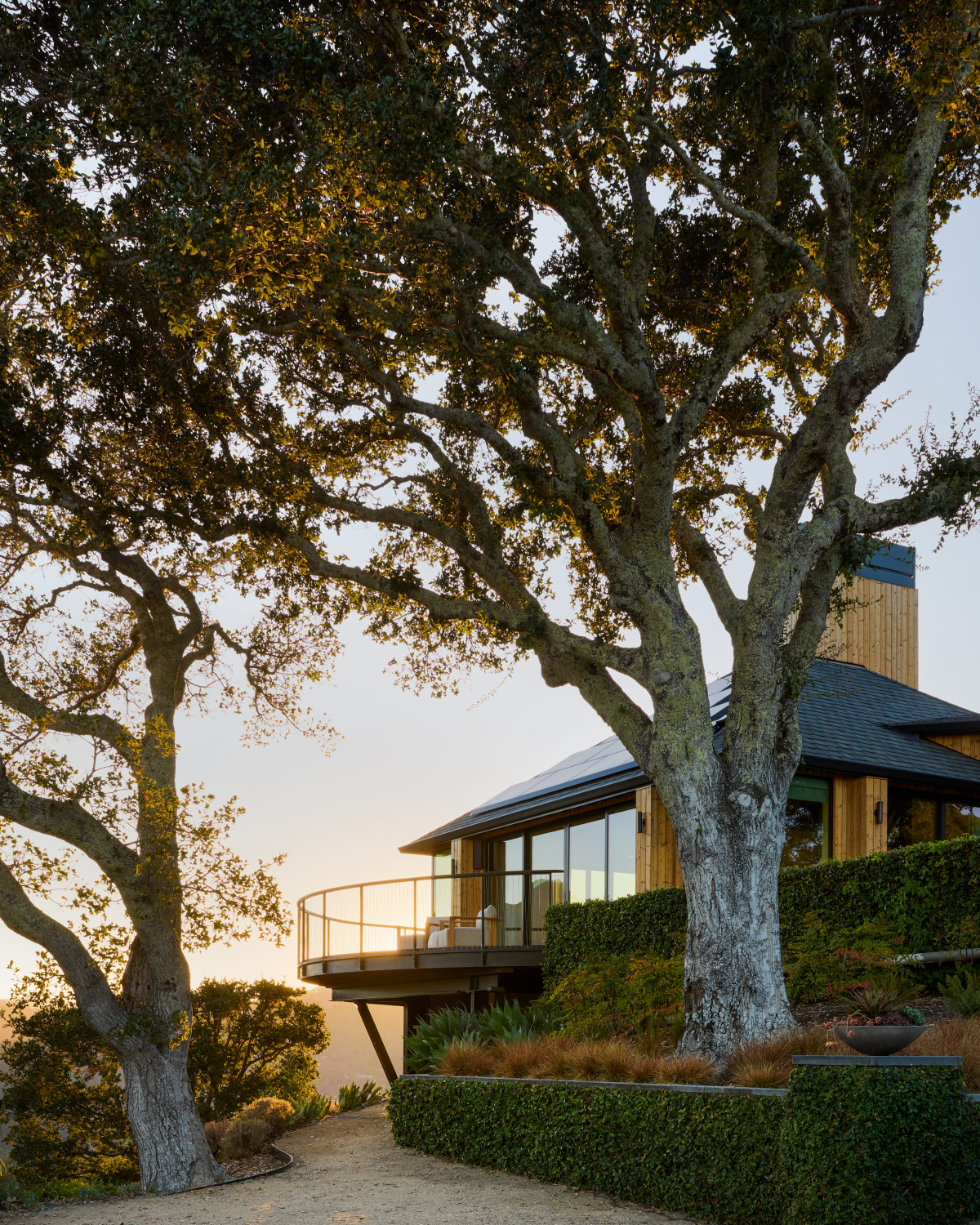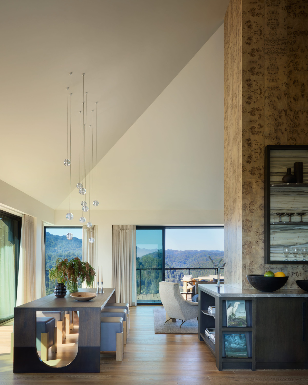 Dom z lat 60. o powierzchni 230 m2 znajduje się w Ross w Kalifornii. Właścicielowi zależało na nowoczesnej aktualizacji rezydencji przy jednoczesnym zachowaniu pierwotnego obrysu budynku. Dom miał być nowoczesny, ale jednocześnie funkcjonalny i komfortowy w codziennym użytkowaniu. Kluczowym założeniem było też powiązanie wnętrz z otaczającym dom krajobrazem. Rozległe widoki, naturalne światło i płynna relacja między wnętrzem a zewnętrzem zdeterminowały dobór materiałów, form i rozwiązań przestrzennych.