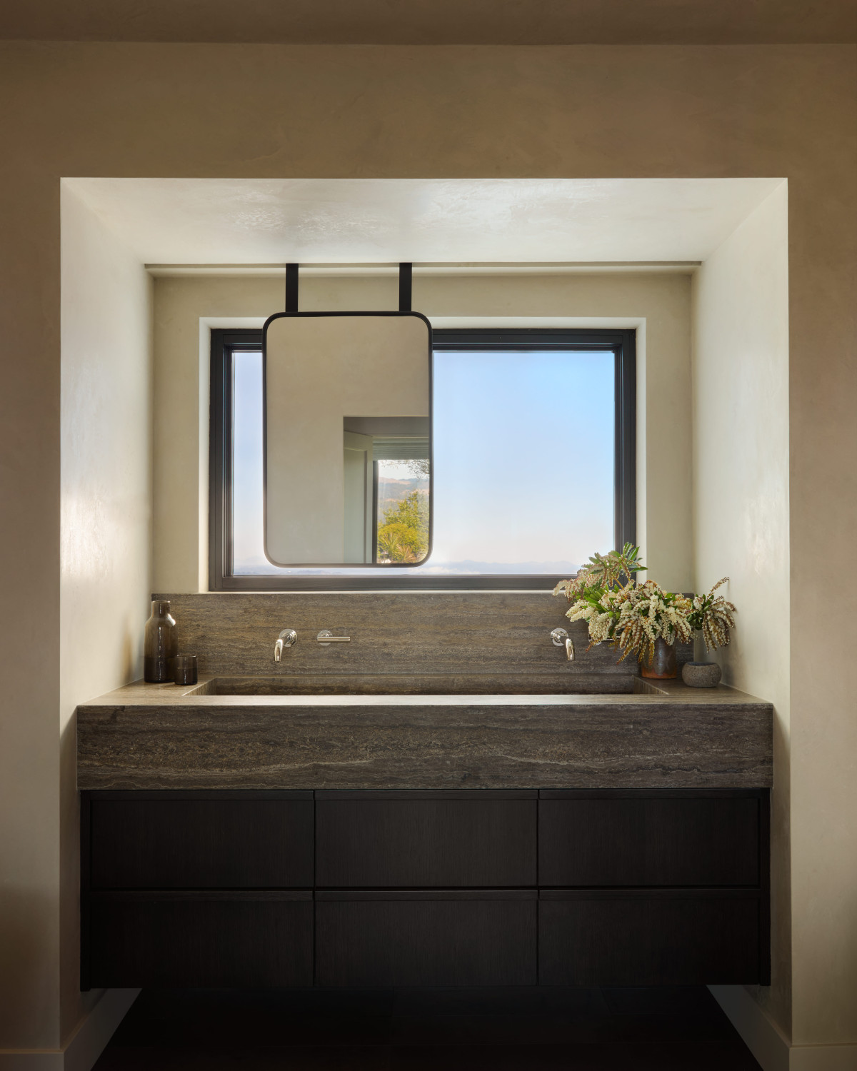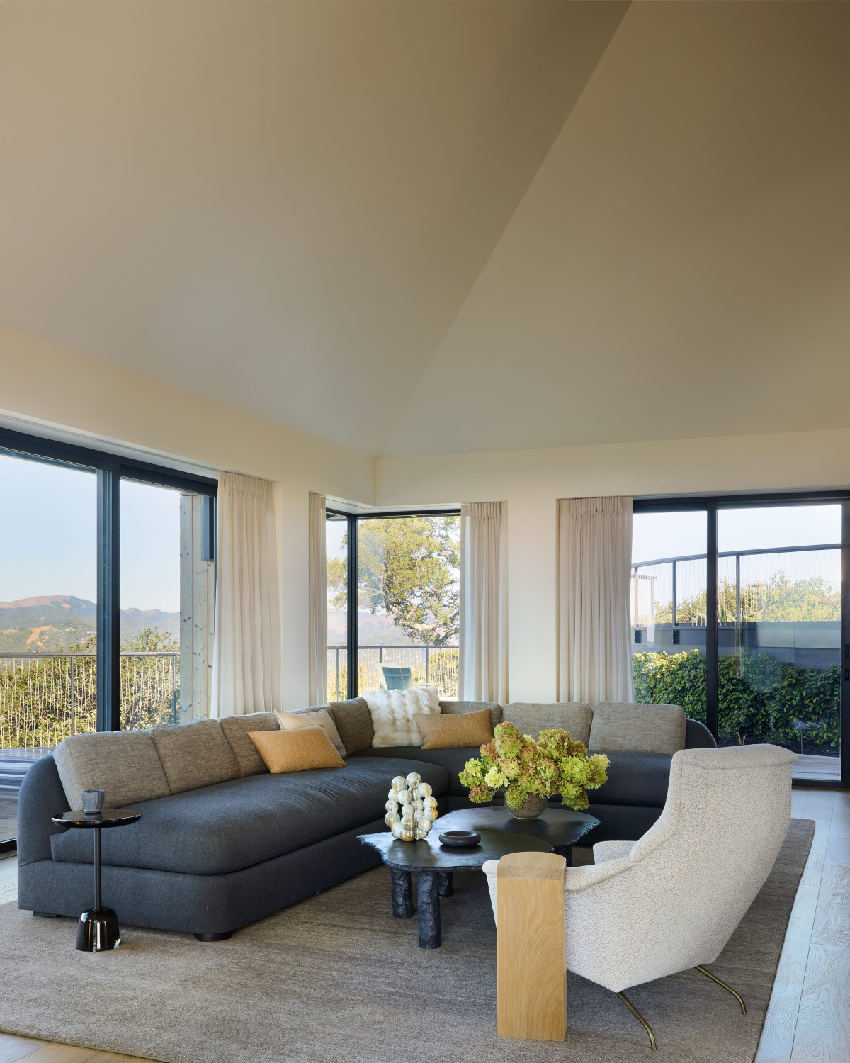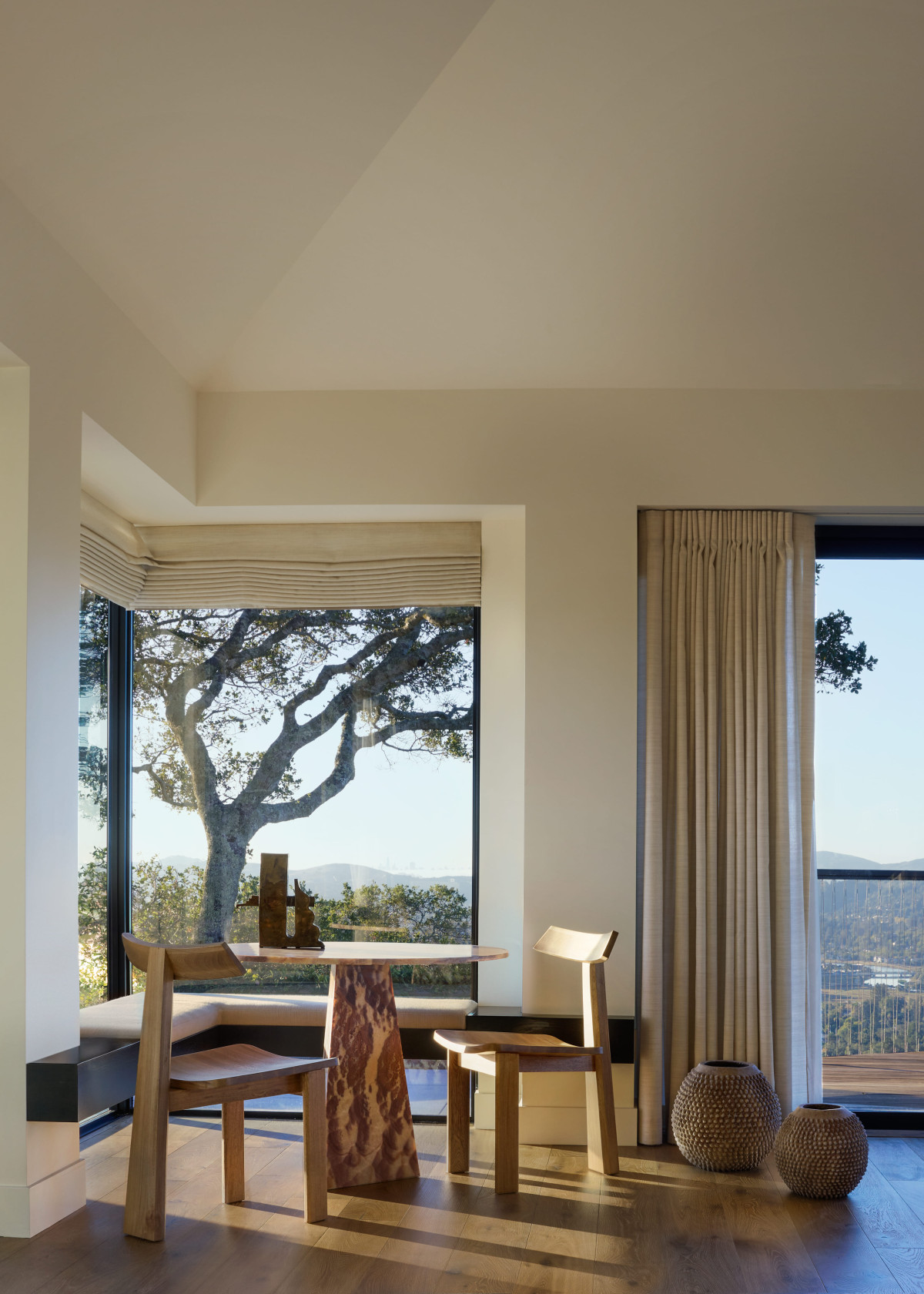 Dom z lat 60. o powierzchni 230 m2 znajduje się w Ross w Kalifornii. Właścicielowi zależało na nowoczesnej aktualizacji rezydencji przy jednoczesnym zachowaniu pierwotnego obrysu budynku. Dom miał być nowoczesny, ale jednocześnie funkcjonalny i komfortowy w codziennym użytkowaniu. Kluczowym założeniem było też powiązanie wnętrz z otaczającym dom krajobrazem. Rozległe widoki, naturalne światło i płynna relacja między wnętrzem a zewnętrzem zdeterminowały dobór materiałów, form i rozwiązań przestrzennych.