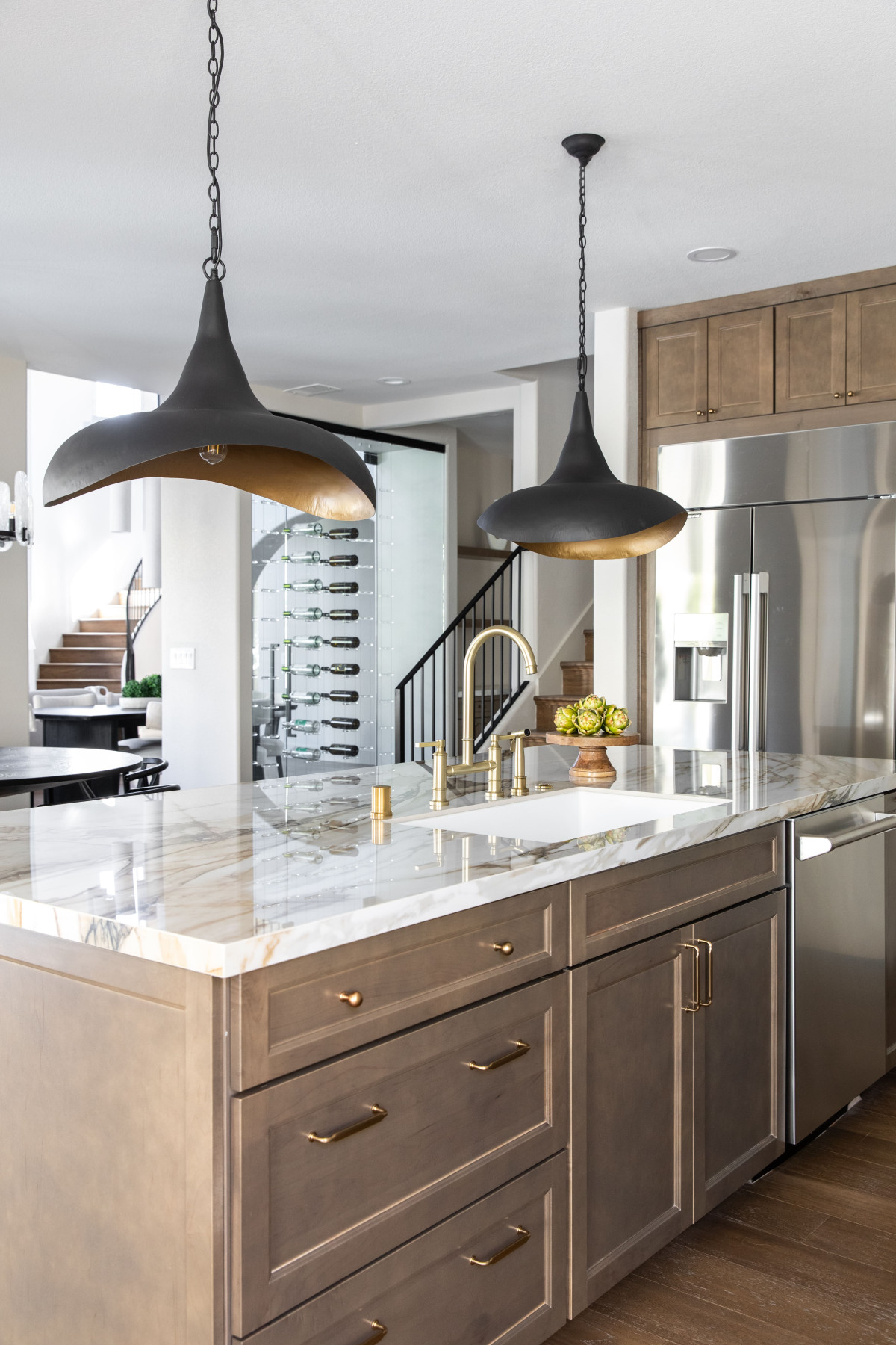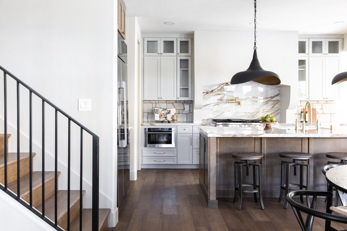 Pierwotny układ domu składał się z wielu zamkniętych pomieszczeń z ciemnym wykończeniem, co tylko potęgowało ponurą i przytłaczającą aurę. Dzięki usunięciu kilku ścian, otwarciu ciągu komunikacyjnego między piętrem a głównymi strefami dziennymi oraz dopracowaniu przejść między poszczególnymi strefami i pomieszczeniami, dom stał się spójny, przestronny i intuicyjny – sprawdzający się zarówno w codziennym użytkowaniu, jak i podczas większych przyjęć.