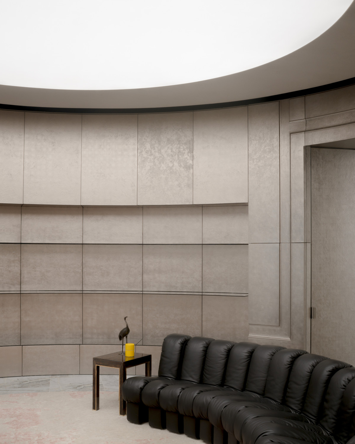 Butik zajmuje trzy poziomy, zaprojektowane jako sekwencja pomieszczeń – otwartych, stonowanych, przypominających wnętrza muzealne – a każde z nich nadaje własny rytm i smak prezentowanym w nich kolekcjom. Wnętrza wyrażają precyzyjną wizję Anthony’ego Vacarello, którą charakteryzuje czystość linii, wyważone napięcie i minimalizm.