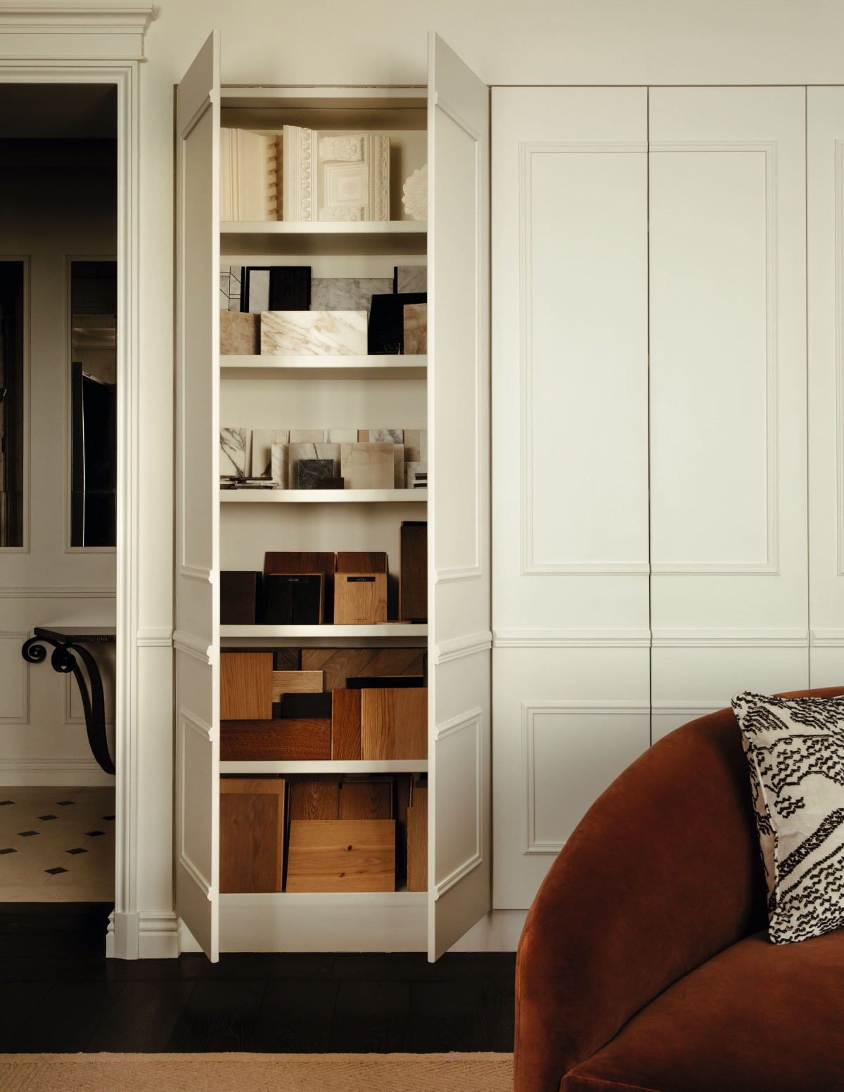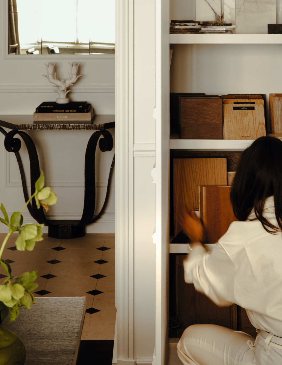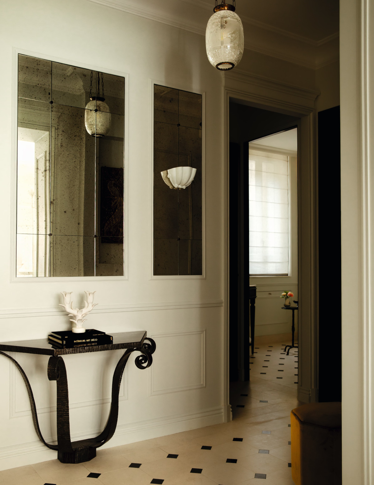 Studio Lichelle Silvestry Interiors mieści się w XVI dzielnicy Paryża, przy eleganckiej ulicy otoczonej bujną zielenią. Zabytkowa kamienica pochodzi z 1918 roku i jej zdobienia przypisywane są słynnemu architektowi Art Nouveau, Hectorowi Guimardowi (to właśnie on zaprojektował charakterystyczne wejścia do paryskiego metra). Na uwagę zasługują szczególnie ozdobne drzwi wejściowe, oryginalna mozaikowa posadzka czy rzeźbiona winda.