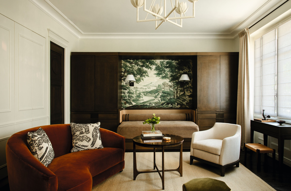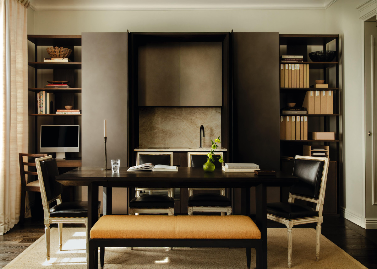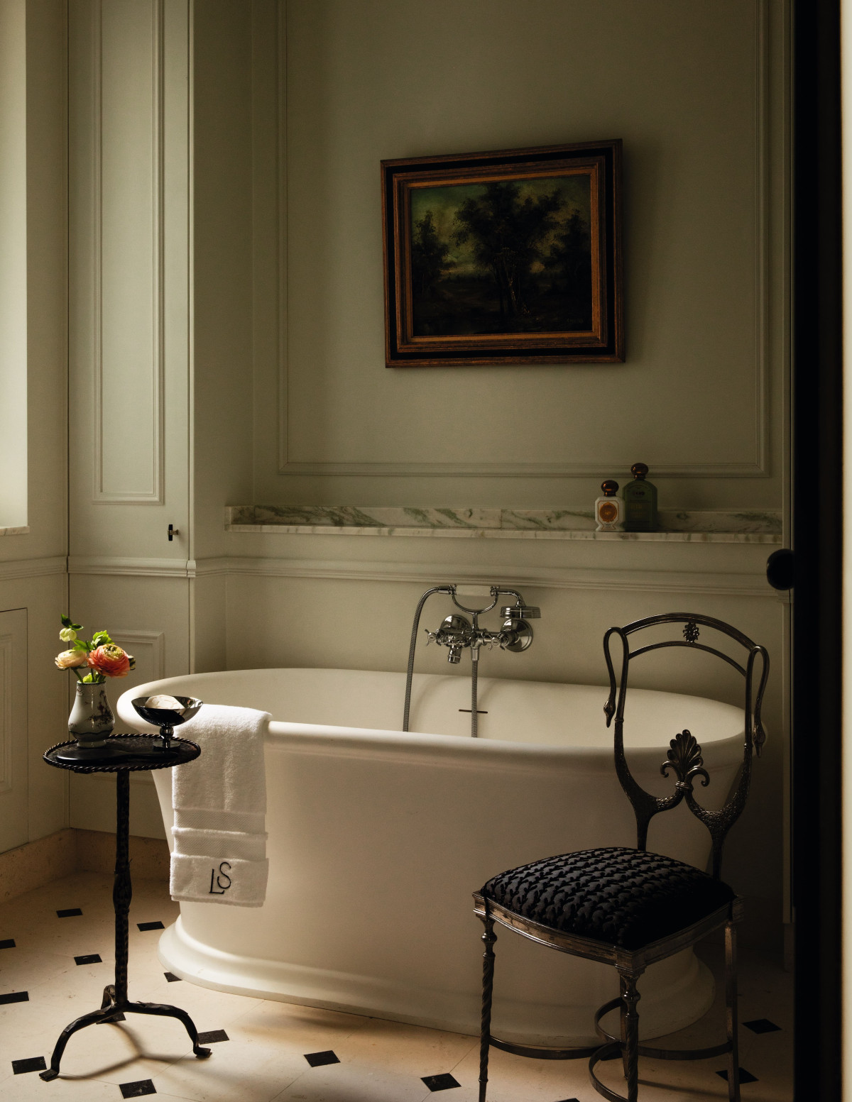 Lampy Baccarat z lat 20., zainspirowały styl części mebli wykonanych na zamówienie. Ponadto, we wnętrzu swoje miejsce znalazły zabytkowe lustra i ręcznie wykończone detale. Gobelin z XVIII wieku, który zawisł we wnętrzach, wyznaczył kolorystykę poszczególnych pomieszczeń, choć podstawowa paleta barwna to bezpośrednie nawiązanie do pałacyku Trianon w Wersalu, gdzie dominują kremy, subtelne szarości i akcenty zieleni. Nie zabrakło też eleganckich i ponadczasowych materiałów: hol wykończono kamieniem wapiennym, podłogi pokrył drewniany parkiet, a ręcznie wykończone okucia pojawiające się w różnych częściach lokalu wykonano z mosiądzu.