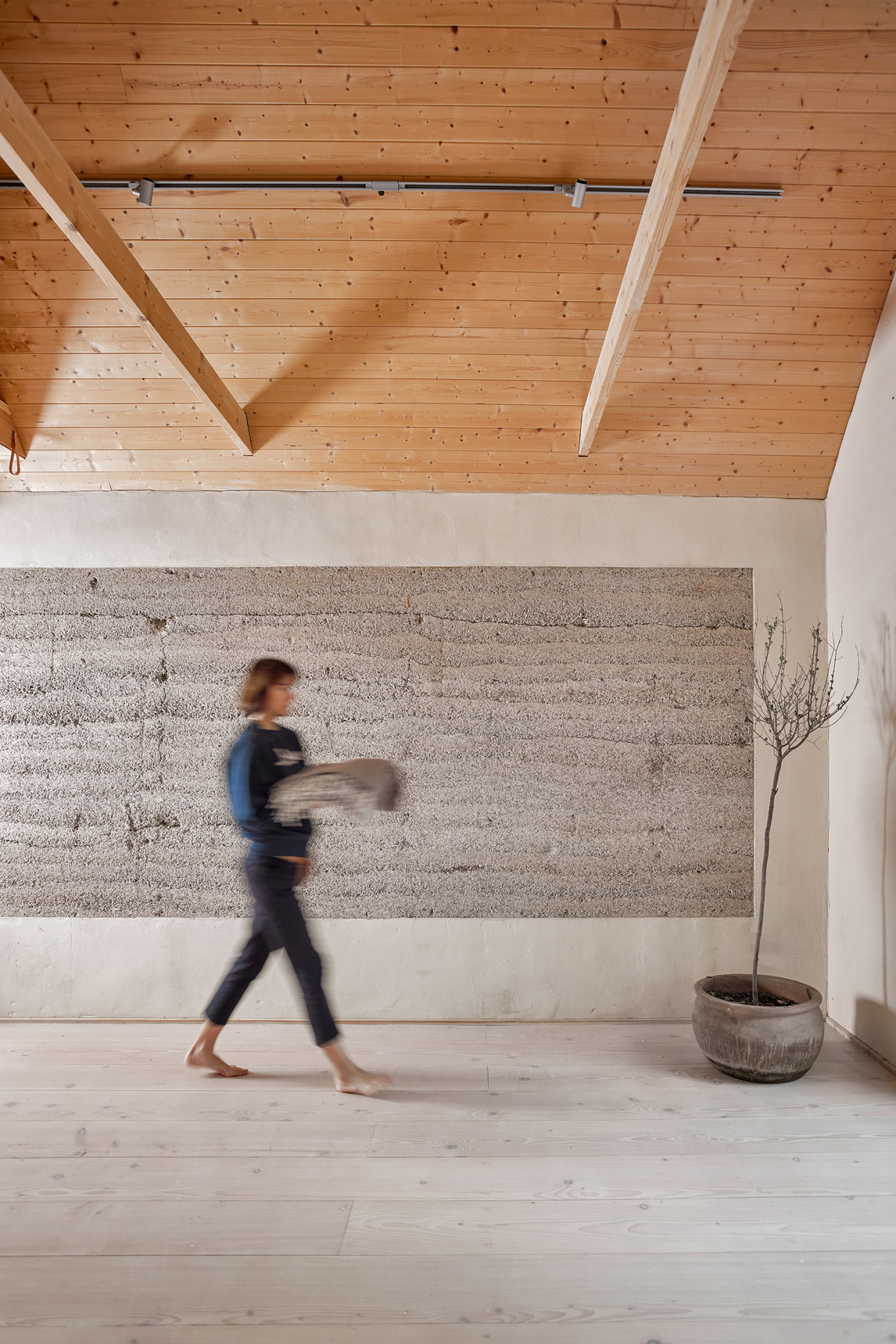 W pracy wspomagali go znajomi i pasjonaci ekologicznego budownictwa. Największym wyzwaniem okazało się wykończenie ścian w łazience. Tu wykorzystano tzw. tadelakty, tradycyjne tynki wapienne stosowane od starożytności na terenie dzisiejszego Maroka. Spopularyzowali je hipisi. – Na ścianę nakłada się warstwę wapna, a po wyschnięciu poleruje kamieniem, używając mydła oliwnego. Powstaje przepiękny, zmywalny tynk, ale reżim wykonawczy jest potworny. Procesu nie wolno przerywać, na każdym etapie trzeba mierzyć wilgotność i ręcznie, centymetr po centymetrze, docierać, co może zająć nawet dobę – opowiada architekt.