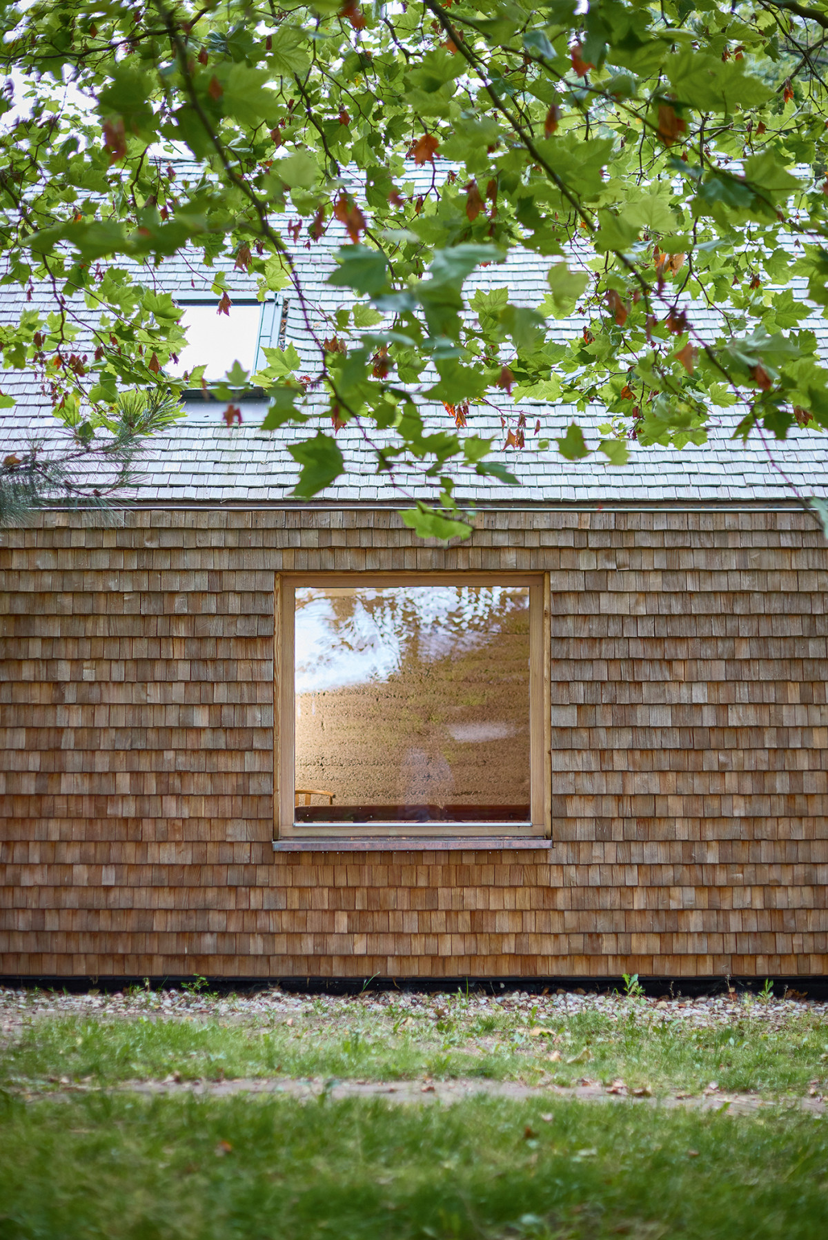 Budynek ma tradycyjną konstrukcję szkieletową. Elewacje i dach pokryto ręcznie wytwarzanym gontem łupanym z modrzewia. Zdjęcie: Bartek Kędziora