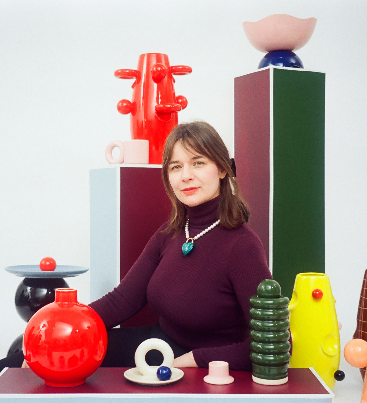 Malwina Konopacka i jej obiekty ceramiczne. Zdjęcie: Tola Dolgowska
