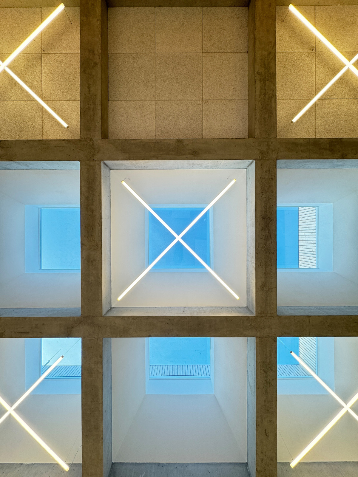 Wystrój sal opiera się na motywie kwadratu, który widoczny jest tu w różnych skalach i formach: jako belki stropowe, ramy okienne, panele akustyczne, modułowe meble, ruchome skrzynie do przechowywania czy klocki LEGO. Ponadto, każda sala ma otwarty układ z wyraźnie zaznaczonymi strefami przeznaczonymi do różnych aktywności.