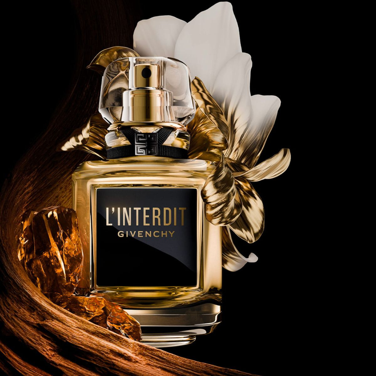L’Interdit Parfum to nowa odsłona ikonicznego L’Interdit od Givenchy. Zapach w tej wersji jest jeszcze bardziej urzekający, zmysłowy i wyrafinowany dzięki kwiatowo-drzewnej, balsamicznej kompozycji, nasyconej esencją gorzkich migdałów w połączeniu z aksamitnymi nutami absolutu mimozy. Charakterystyczny dla gamy drzewny akord wetiweru i paczuli odkrywa swoje najszlachetniejsze oblicze w towarzystwie bursztynowych nut mirry, opoponaksu i absolutu benzoesowego oraz trzech cennych balsamów, które nadają wysublimowany, uzależniający ton. Nazwa zapachu pochodzi od zdania „Je vous l’interdis!” (Zabraniam Ci!), które Audrey Hepburn miała powiedzieć do projektanta Huberta de Givenchy, kiedy po raz pierwszy zapytał ją, czy mógłby zacząć sprzedawać perfumy, które stworzył dla niej trzy lata wcześniej. Perfumy trafiły na rynek w 1957 roku…