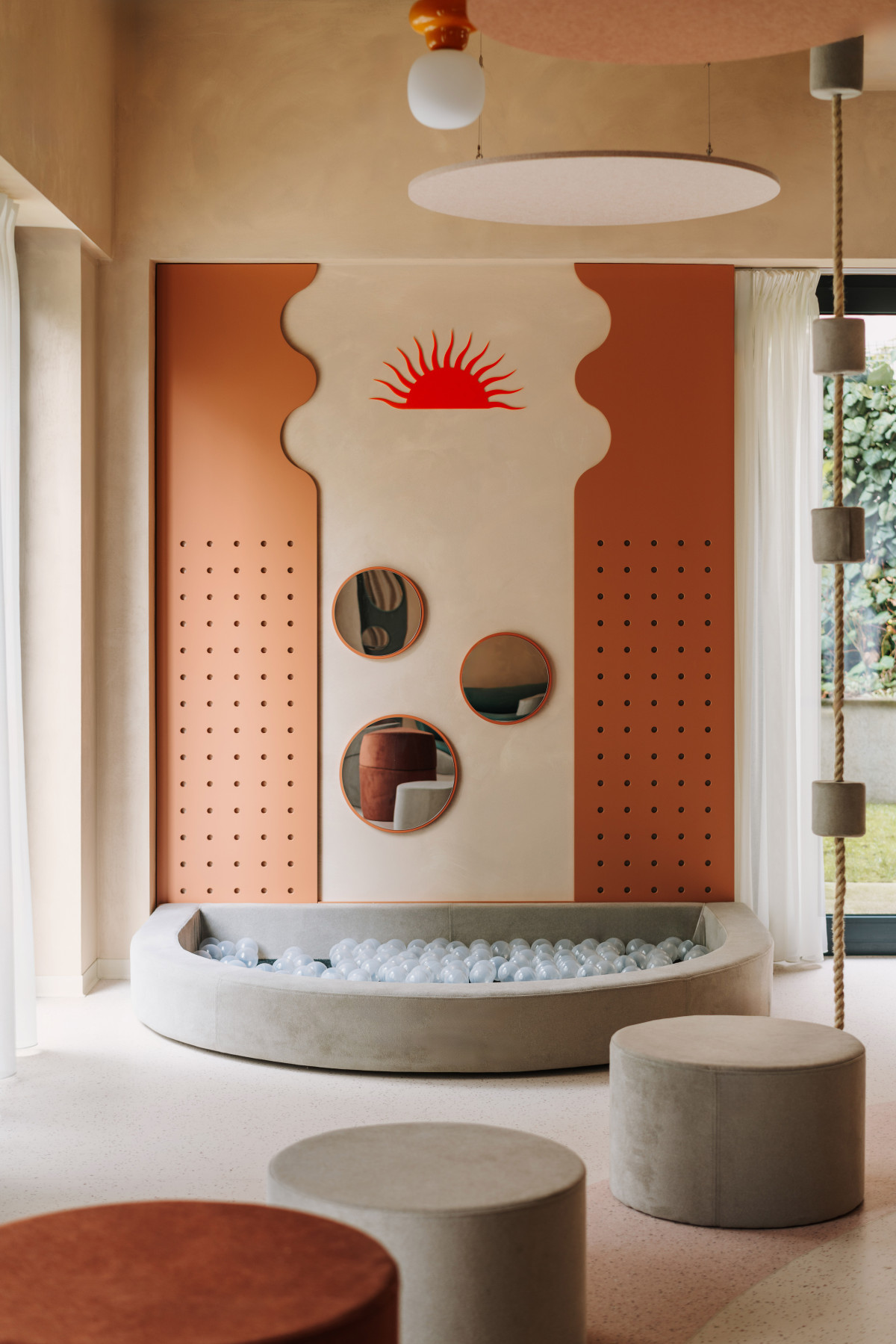 Sunday to połączenie kawiarni i bawialni – przestrzeni, w której dorośli mogą napić się kawy, zjeść śniadanie lub lunch, a dzieci mają miejsce do swobodnej i kreatywnej zabawy. Co istotne, projekt estetycznie nie dzieli przestrzeni na część „dla dzieci” i „dla dorosłych” – całość została zaprojektowana spójnie, w oparciu o naturalne materiały i subtelną kolorystykę inspirowaną filozofią Montessori.