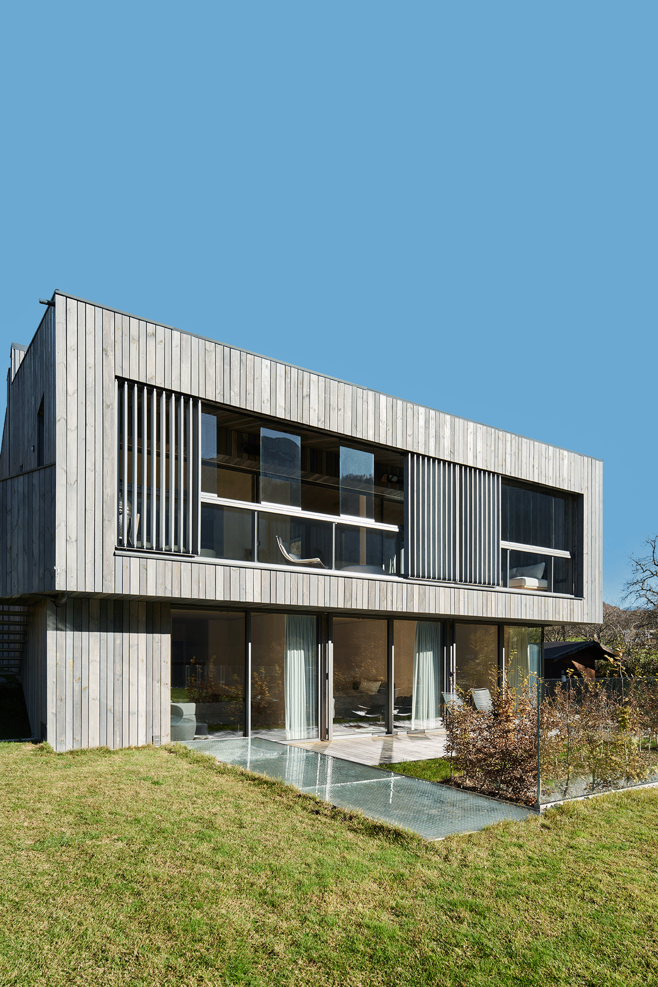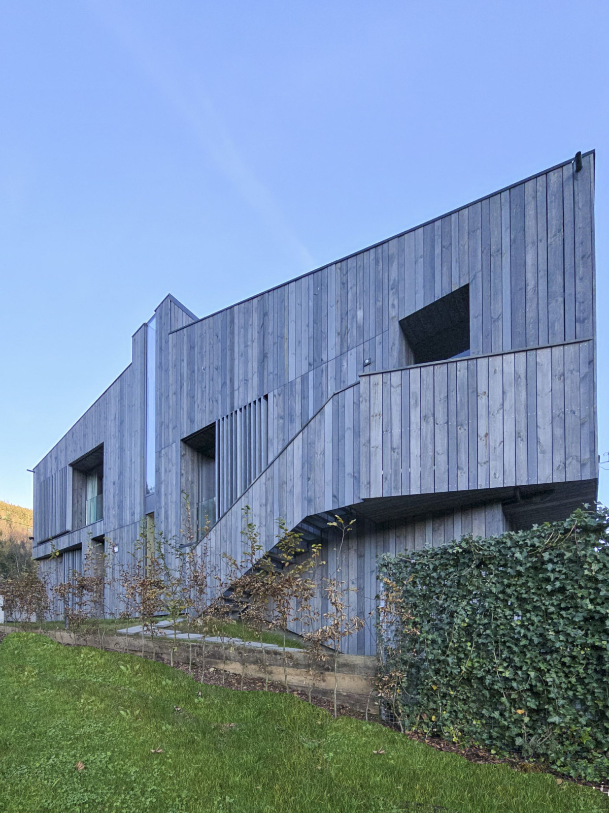 Dzięki elewacjom z naturalnie wybarwionych desek dom zdaje się wtapiać w tło skalnego masywu Salzkammergut-Berge. Zdjęcie: Wolfgang Zlodej