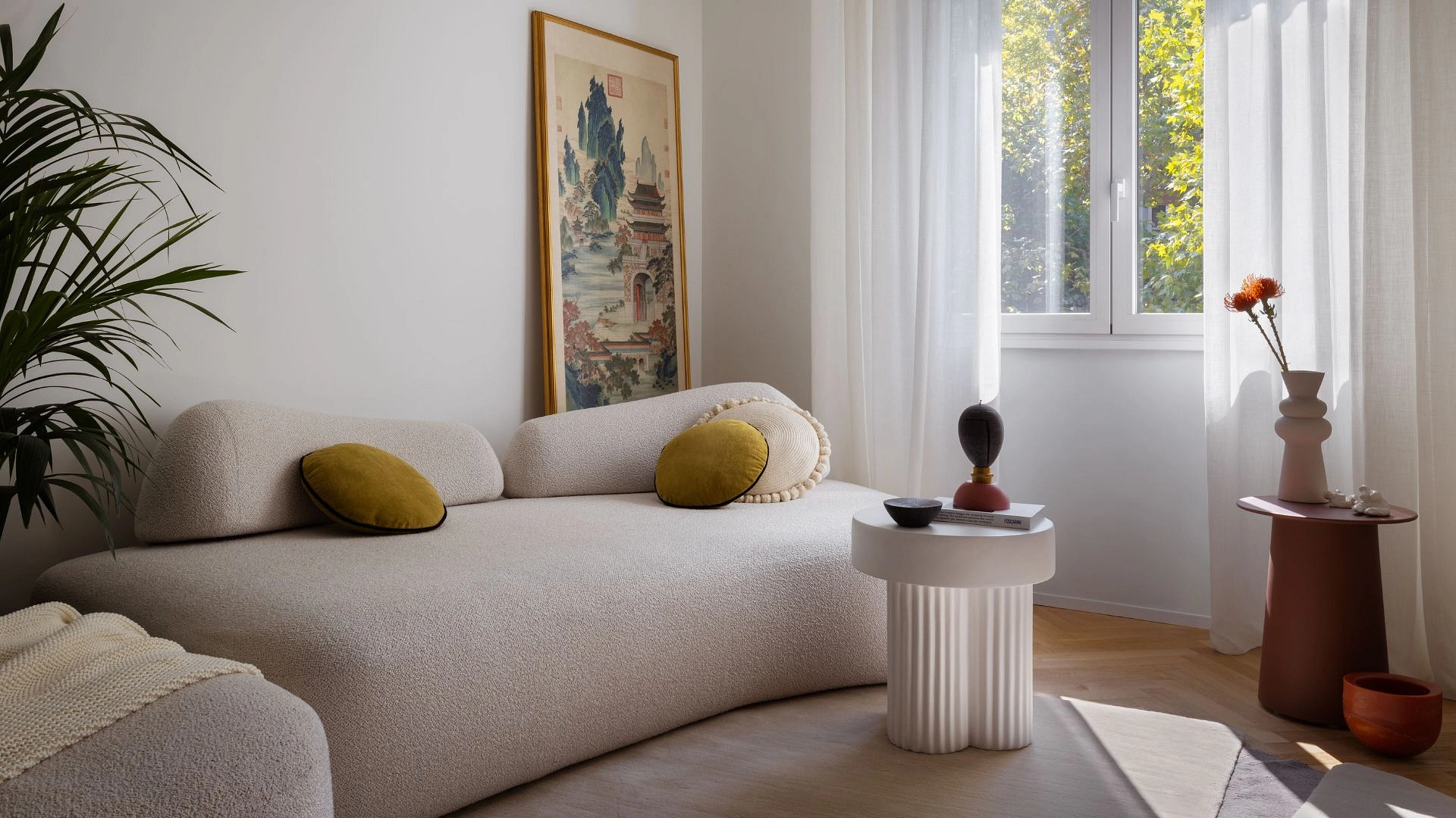 90-metrowe mieszkanie łączy mediolański modernizm z urokiem Orientu