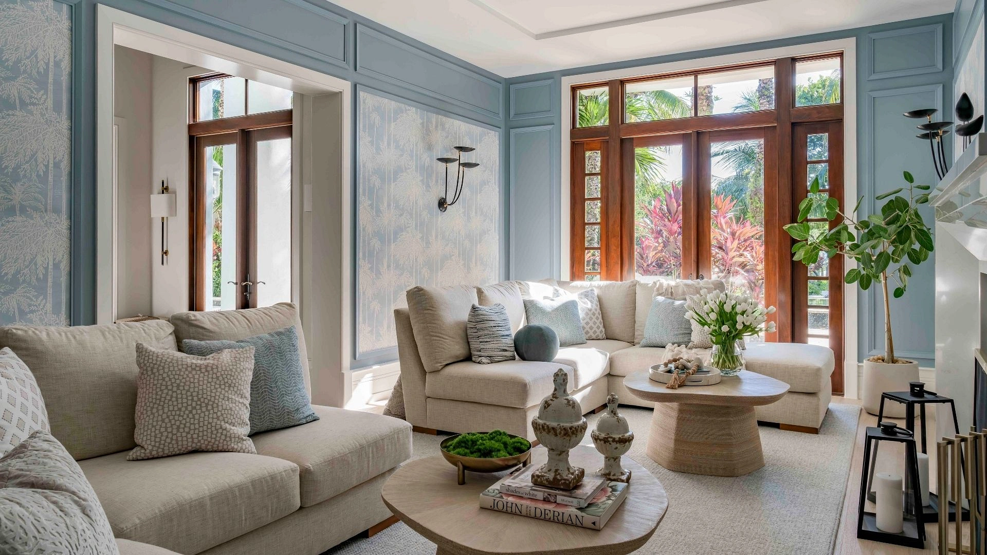 Eksplozja błękitów, świetlne bliki i refleksy w historycznej willi w stylu bawarskim