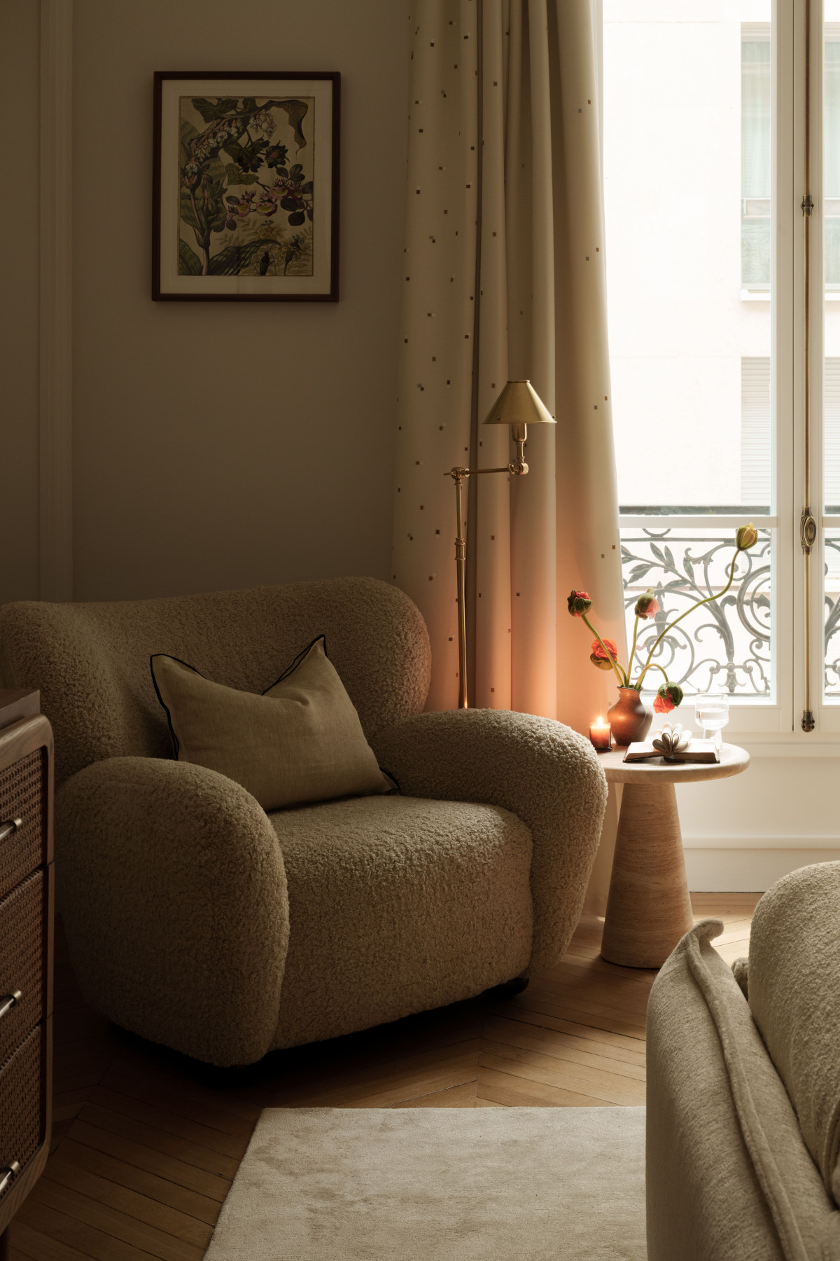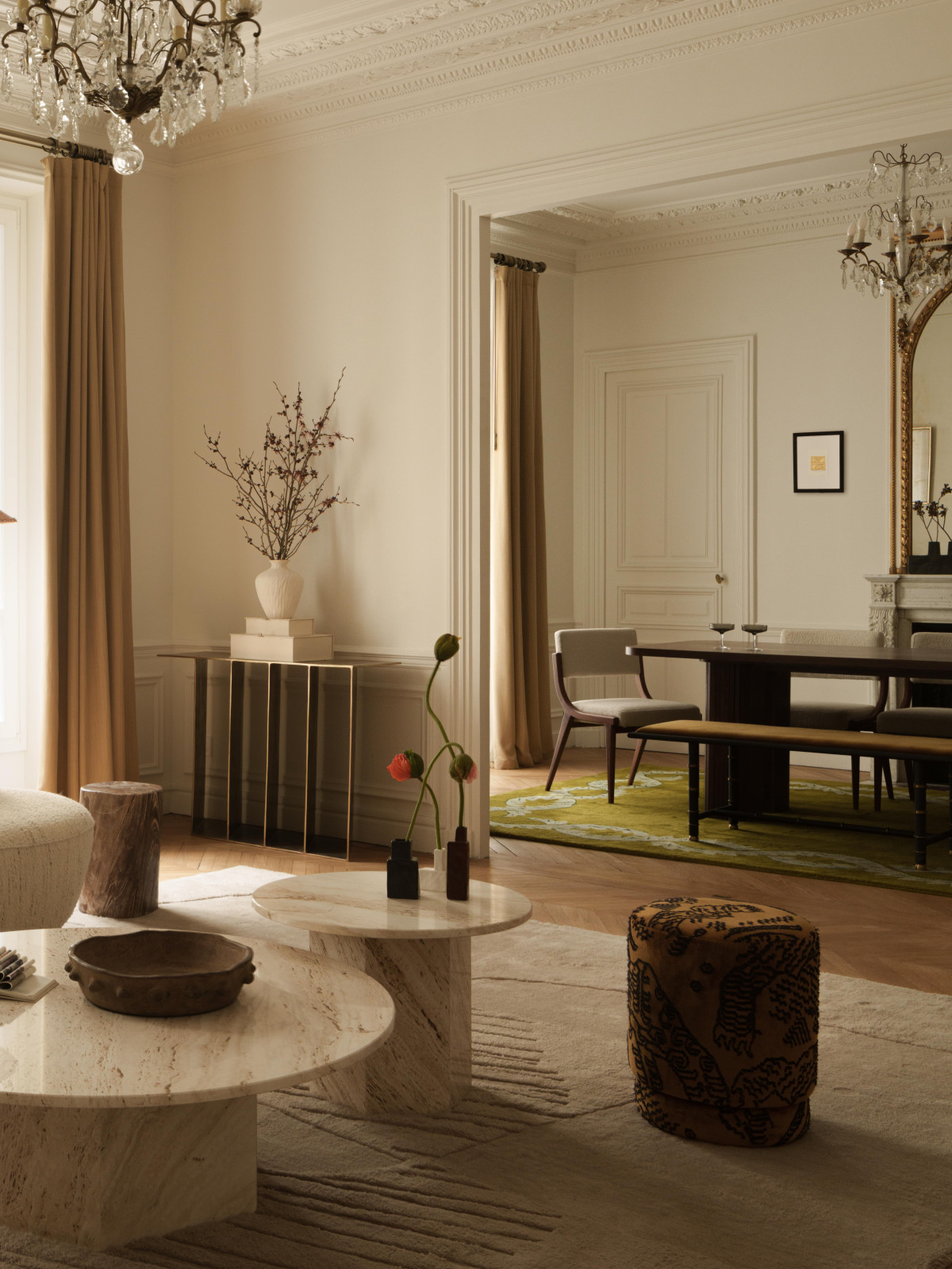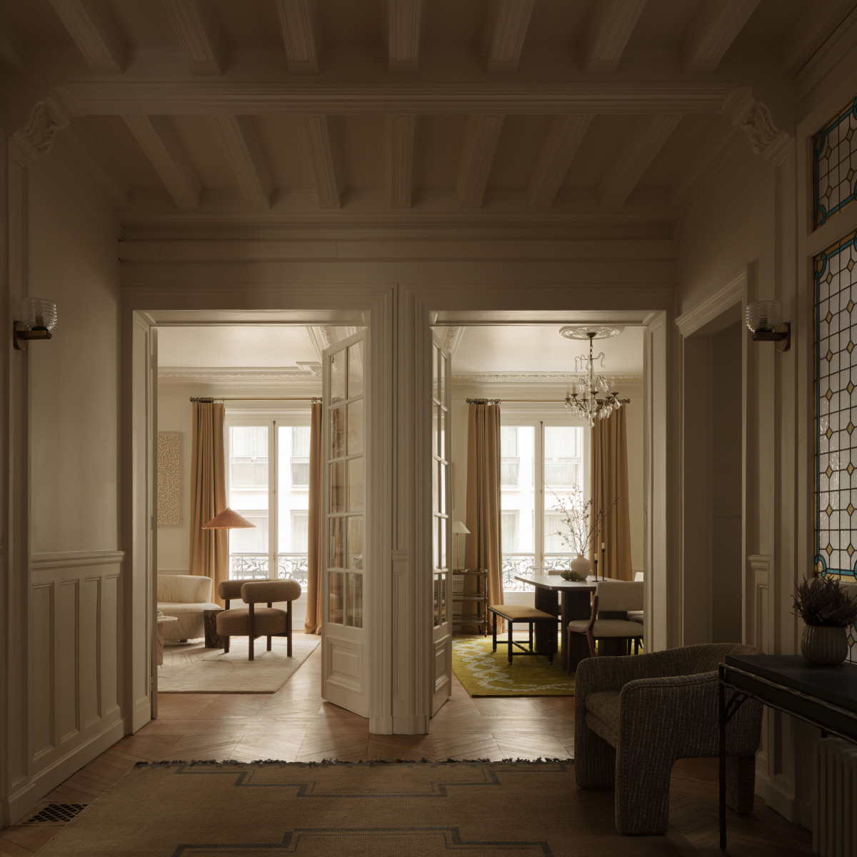Mieszkanie znajduje się w haussmannowskiej kamienicy z 1900 roku. Lokalizacja jest jak z bajki – rzut beretem znajdują się kultowe paryskie atrakcje jak Wieża Eiffla czy Musée d’Orsay. Mieszkanie ma dwie sypialnie, dwie łazienki, toaletę gościnną oraz przestronną strefę dzienną.