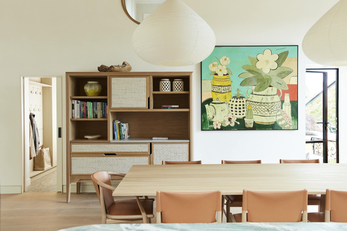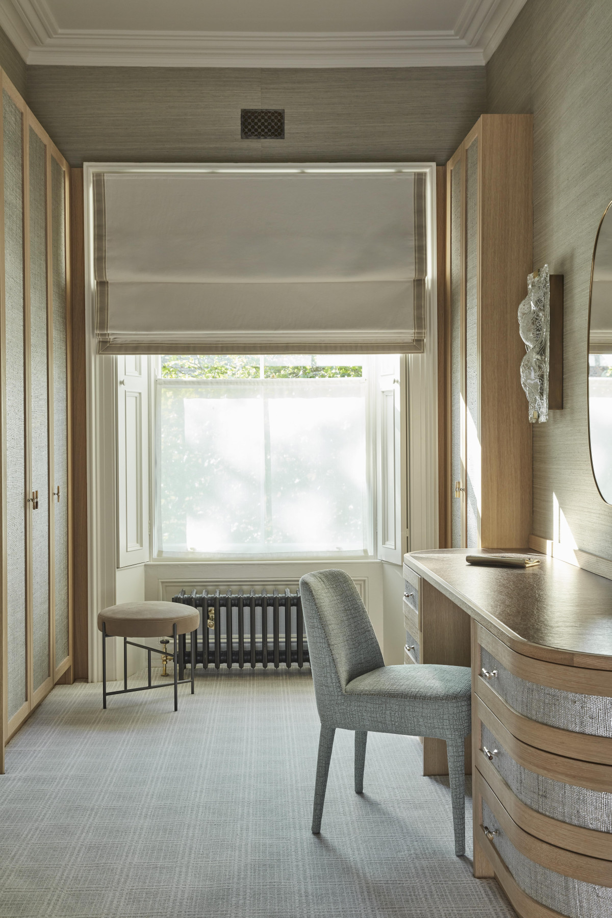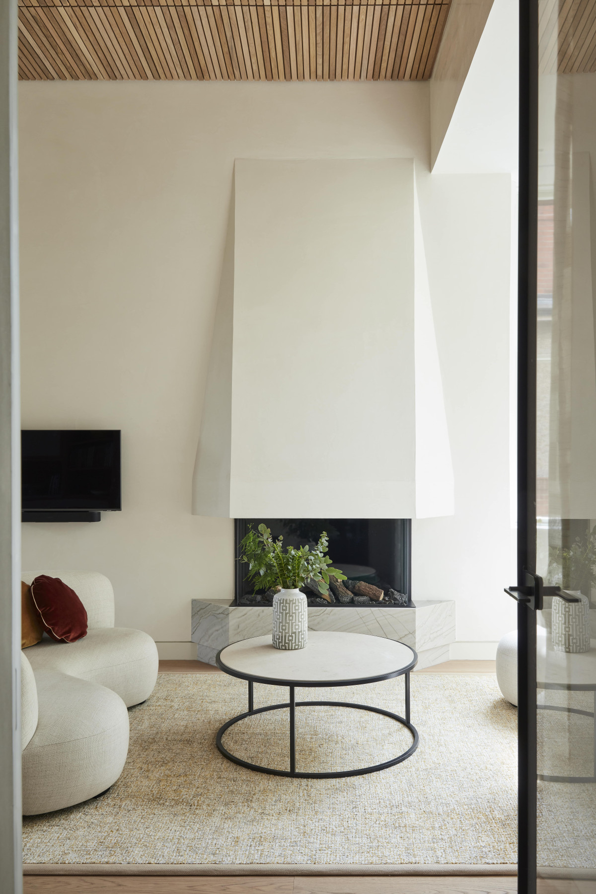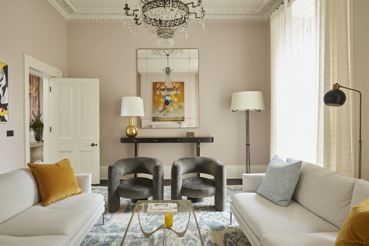 Styl wnętrz łączy współczesne rozwiązania z zabytkowymi wiktoriańskimi elementami jak sztukaterie i dekoracyjne kominki. Dom utrzymany jest w neutralnej, ale ciepłej kolorystyce, która pozwala grać pierwsze skrzypce barwnym dziełom sztuki, nowoczesnym meblom o obłych kształtach i miękkich obiciach, oraz stylowym dodatkom, które dopełniają aranżację.